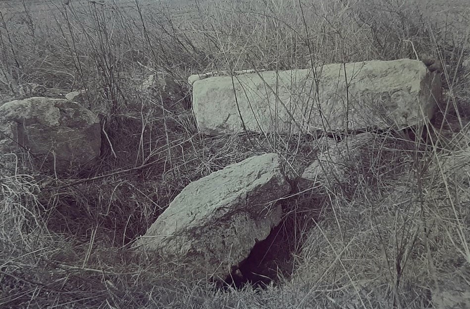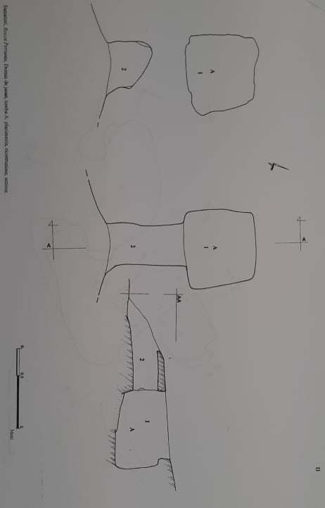 Si tratta delle rovine di un edificio, costruito con grossi blocchi, completamente interrato; in superficie emergono solamente pochi resti sconvolti. Uno dei grossi massi di superficie diversi anni fa venne rimosso da un mezzo agricolo mettendo in evidenza un pertugio attraverso il quale si potè accedere dentro la struttura. Si tratta, con tutta probabilità, di un silos per approvvigionamento idrico o per viveri. La muratura di rivestimento ai fianchi è in massi di medie dimensioni disposti in filari sovrapposti ed aggettanti verso l’imboccatura. La forma è tronco-conica con rigonfiamento inferiore. Diametro alla base m. 1,55; altezza m. 2,73.