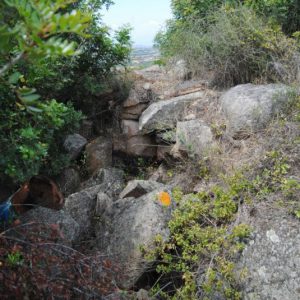 Nuraghe complesso costruito con blocchi di granito bianco. La torre centrale e stata distrutta e “tagliata” a metà per poter costruire la Strada Provinciale SP11 negli anni ‘90 e ’00. Si trova perciò al lato e sotto la strada.