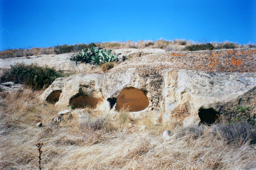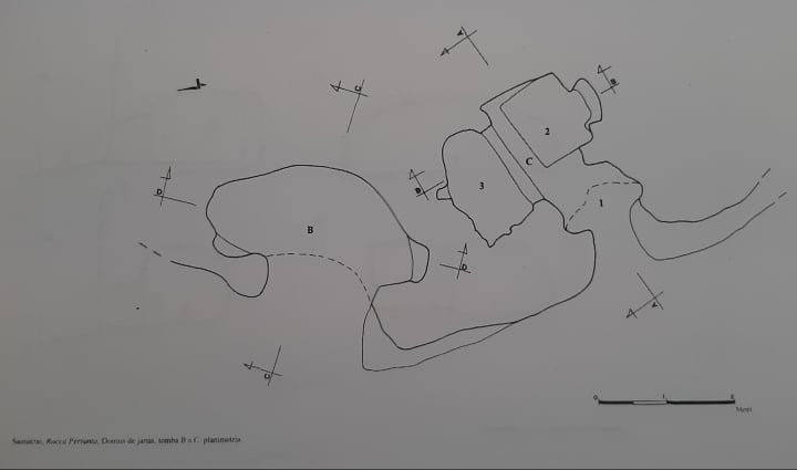 Queste tre tombe ipogeiche sono poste lungo il versante di un piccolo rilievo (quota m. 244) ai margini dell’ampia vallata di S’Ùrri. La prima ha una sola cella di forma ellittica con volta a forno. La seconda si compone di atrio anticella e camera sepolcrale di forma quadrangolare che sulla parete dx presenta una nicchia. La camera comunica sulla sinistra cin una cella rialzata più ampia di forma ellittica che, sulla parete destra presenta due nicchiette all’altezza della volta, mentre su quella frontale una decorazione in rilievo rappresentante due facce umane.