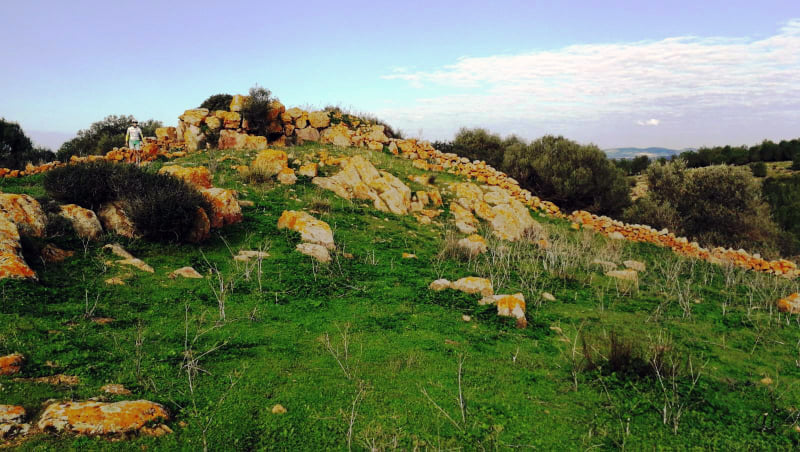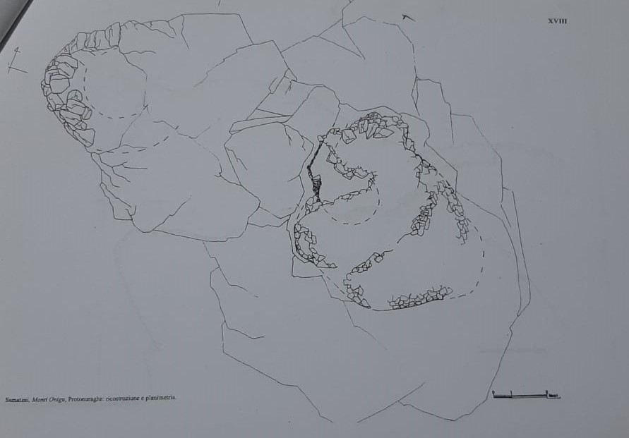 Ai confini tra i territori di Samatzai e Barrali, si raggiunge percorrendo la strada comunale Samatzai – SS 128; oltrepassata la Statale e guadato il Riu Mannu, seguendo un sentiero dopo una ventina di minuti di cammino in salita si arriva al sito che si erge dall’alto di una rupe granitica (quota 181 m.). Si tratta di una costruzione arcaica di presumibile forma oblunga estesa sull’asse nord-sud per una lunghezza presunta di m. 20 e una larghezza di m. 13,40. L’edificio è costruito interamente sulla roccia preesistente con brusco declivio in direzione nord. Il prospetto a sud è costituito da due filari di grossi e rozzi blocchi granitico-marnosi senza alcuna lavorazione, di dimensioni poco uniformi e sovrapposti con tecnica arcaica irregolare senza alcuna disposizione sui piani orizzontali.