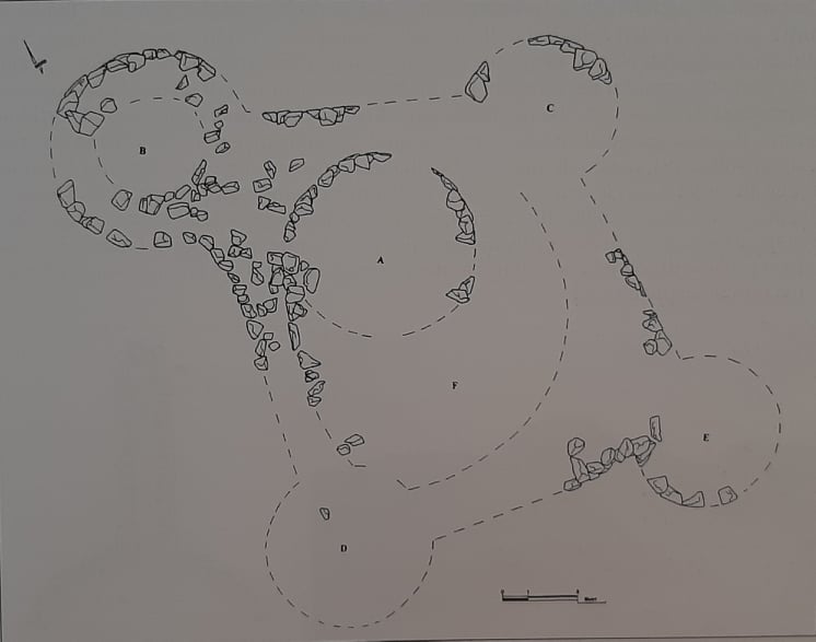 Si tratta delle rovine di un insediamento molto importante con un nuraghe complesso con probabile villaggio circostante. La disposizione planimetrica è composta da un mastio centrale circondato da 4 torri laterali unite da cortine murarie. I materiali utilizzati sono costituiti da grossi blocchi sbozzati di marna calcarea. Con i materiali di crollo dell’insediamento è stato costruito, nel lato nordovest un grande recinto circolare per il bestiame ancora evidente.