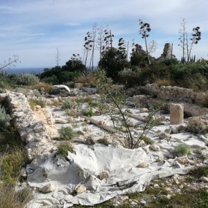 Si tratta delle rovine di un edificio, costruito con grossi blocchi, completamente interrato; in superficie emergono solamente pochi resti sconvolti. Uno dei grossi massi di superficie diversi anni fa venne rimosso da un mezzo agricolo mettendo in evidenza un pertugio attraverso il quale si potè accedere dentro la struttura. Si tratta, con tutta probabilità, di un silos per approvvigionamento idrico o per viveri. La muratura di rivestimento ai fianchi è in massi di medie dimensioni disposti in filari sovrapposti ed aggettanti verso l’imboccatura. La forma è tronco-conica con rigonfiamento inferiore. Diametro alla base m. 1,55; altezza m. 2,73.