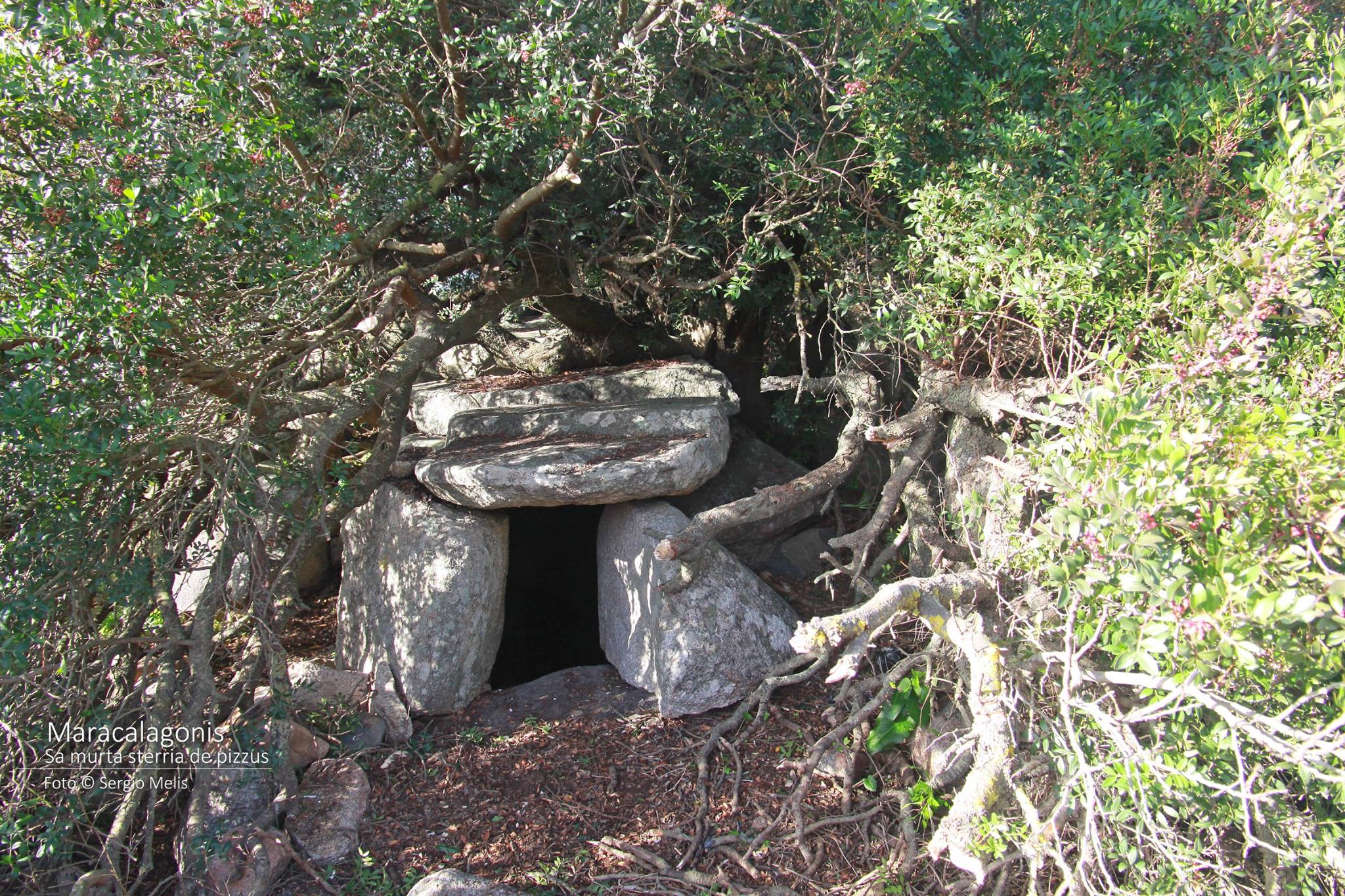 è di trachite tufacea(L 5, la 2,50, h 2,70 m), costituito da una camera rettangolare (4,18 x 1.14 m) delimitata lateralmente da due ortostati, da una lastra frontale con un portello d’ingresso con angoli arrotondati rivolto a sud-est e da una lastra piatta di copertura. All’interno dell’ortostato laterale ad ovest si apre uno stipo rettangolare (L 1,22, la. 0,88, prof. 0,50m).A sinistra della lastra frontale del monumento si trova una nicchietta, scavata nello spessore dell’ortostato ad ovest.