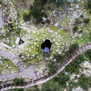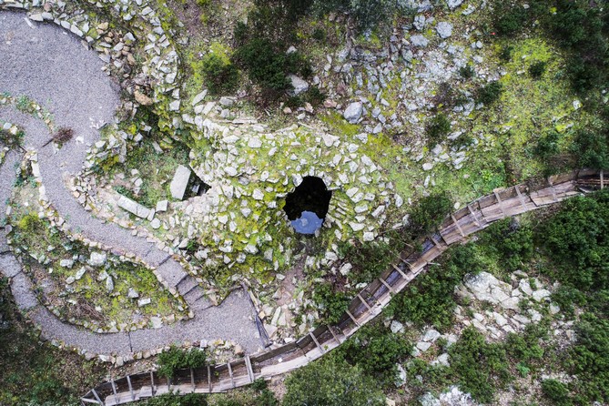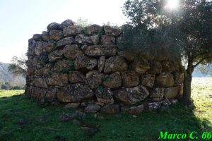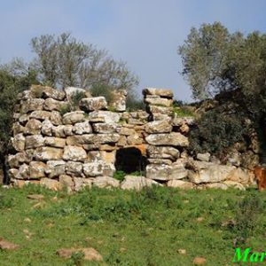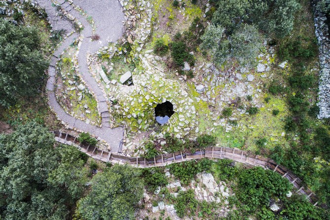 Il villaggio è costituito da tre pozzi sacri e una serie di capanne circolari. Il pozzo meglio conservato si trova nel settore settentrionale dell”area. Costruito con blocchi di scisto locale, si addossa a sud-ovest a una parete rocciosa naturale di modeste dimensioni. L”accesso al vano è decentrato rispetto all”asse della tholos. Quest”ultima è franata nella parte settentrionale. L”area antistante il vano d”ingresso al pozzo è delimitata da una serie di muri curvilinei a diverse quote.