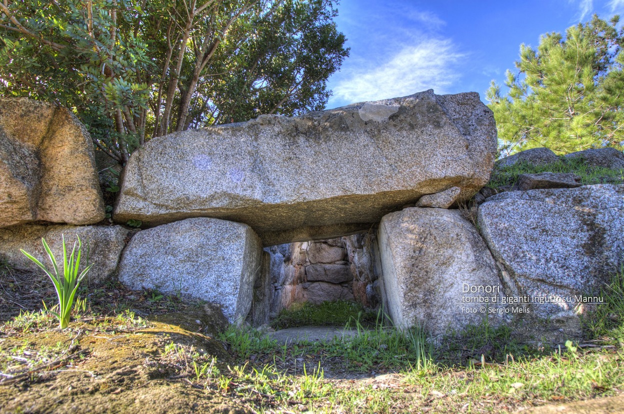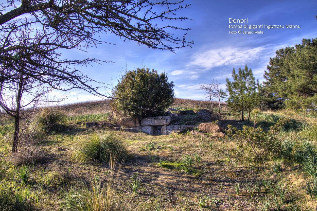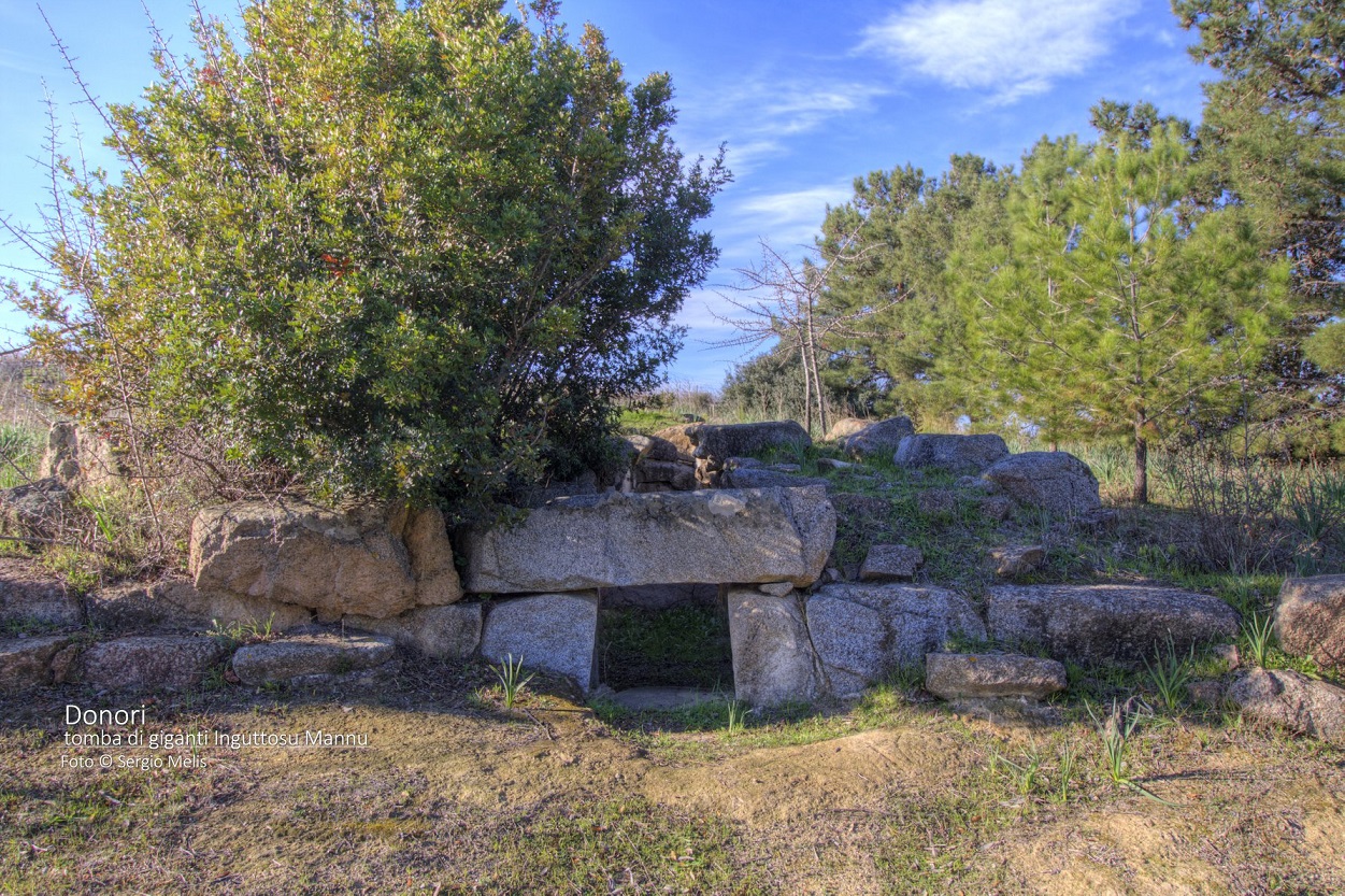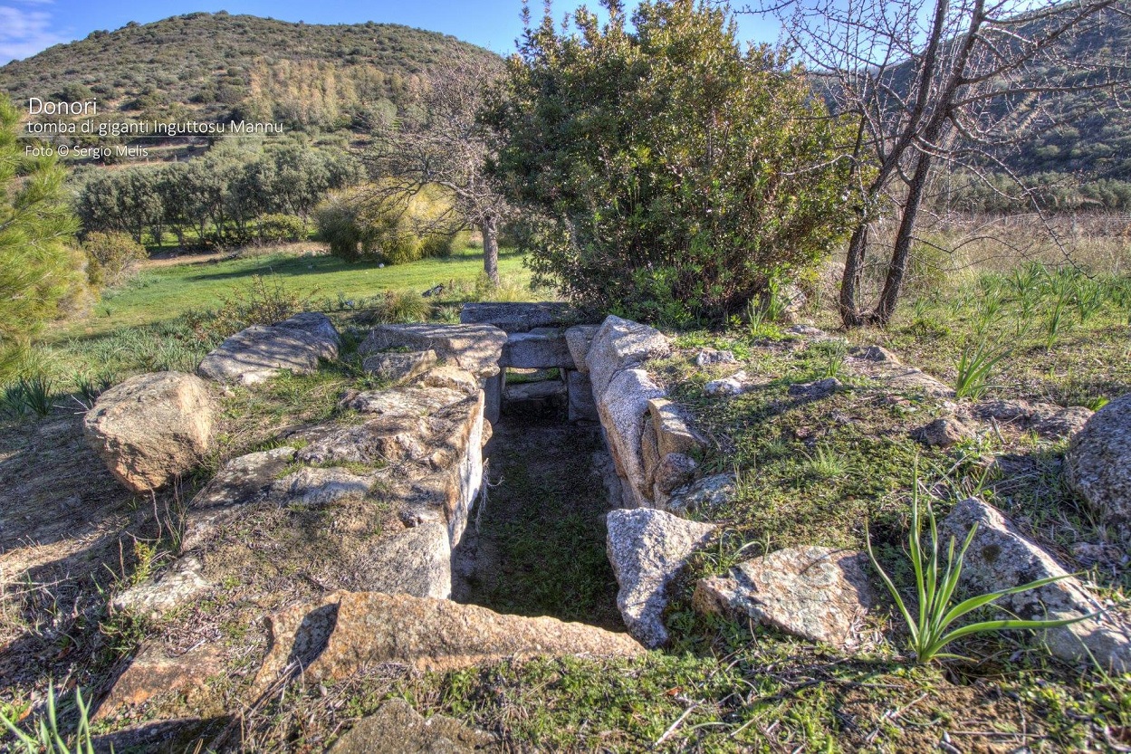 La tomba dei giganti di Inguttosu Mannu si rivela ai visitatori nelle sue forme originarie. Poggiante direttamente sull’affioramento roccioso, è costituita da un corridoio absidato impostato su una esedra dotata di stretto bancone. Al centro dell’esedra un piccolo ingresso architravato, munito di stipiti e soglia, immette nella camera funeraria, un corridoio costituito da filari di blocchi di grosse dimensioni grossolanamente sbozzati e rinzeppati con piccole pietre. La copertura è a volta ogivale. Tracce del muro di contenimento testimoniano che doveva in origine essere coperta da un tumulo di pietre e terra. (Wikipedia)