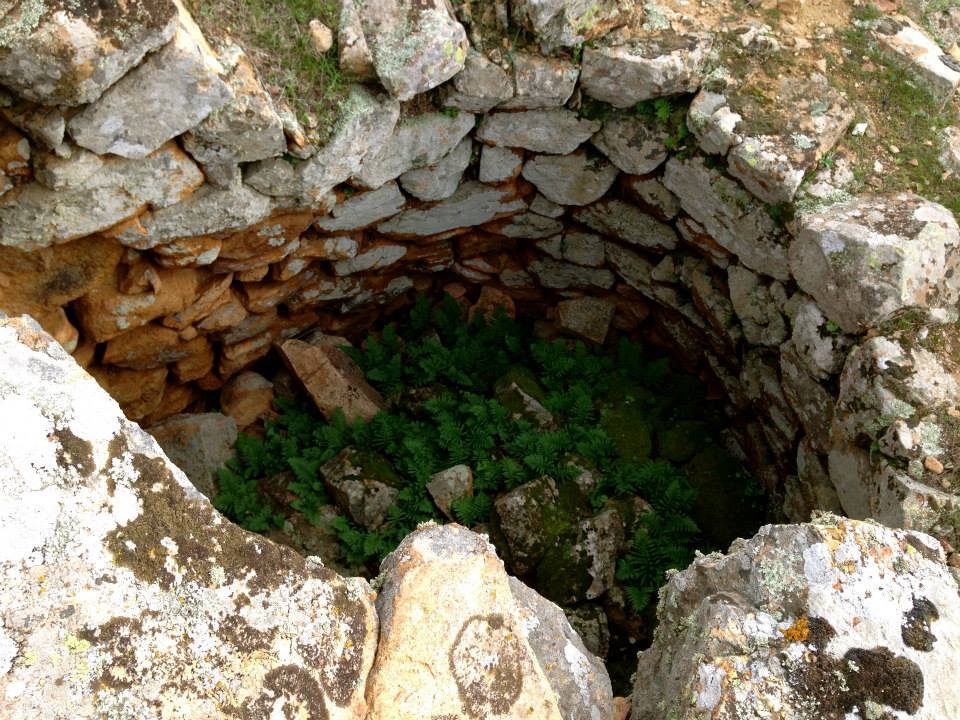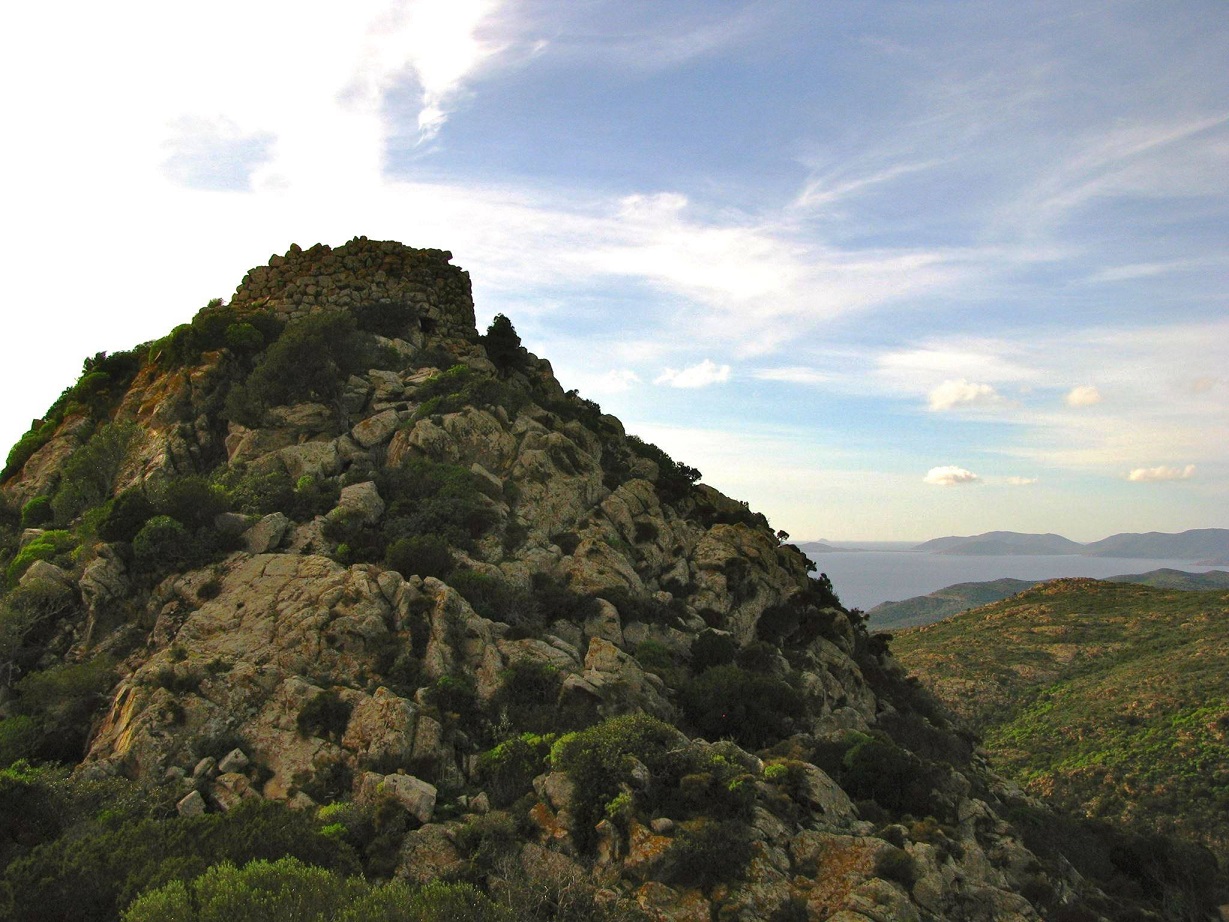 Nuraghe a Tholos di cui è ben visibile la torretta nord. La torre sud è franata sul lato mare. Presente un ingresso artificiale scavato da curiosi.
