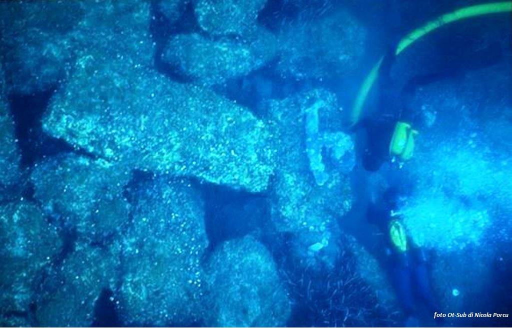 Basta una maschera, e saper nuotare anche così così, per vederle otto nove metri sotto di sé. A interrompere la spianata sommersa – tutta sabbia tranquilla, alghe e zig zag di pesci mezzi matti – c’ è una colossale muraglia formata da pietre giganti. Te la trovi sotto la pancia a un metro e mezzo, due sotto il filo dell’ acqua e, se non fosse per tutti quei ricci che la fanno a pois, nei punti più alti ci si potrebbe appoggiare con i piedi a prender fiato e sputare nella maschera per farla nitida. A seguire il muraglione si va avanti, nuotandoci sopra, per una novantina di metri fino alla riva. (Sergio Frau per Repubblica)