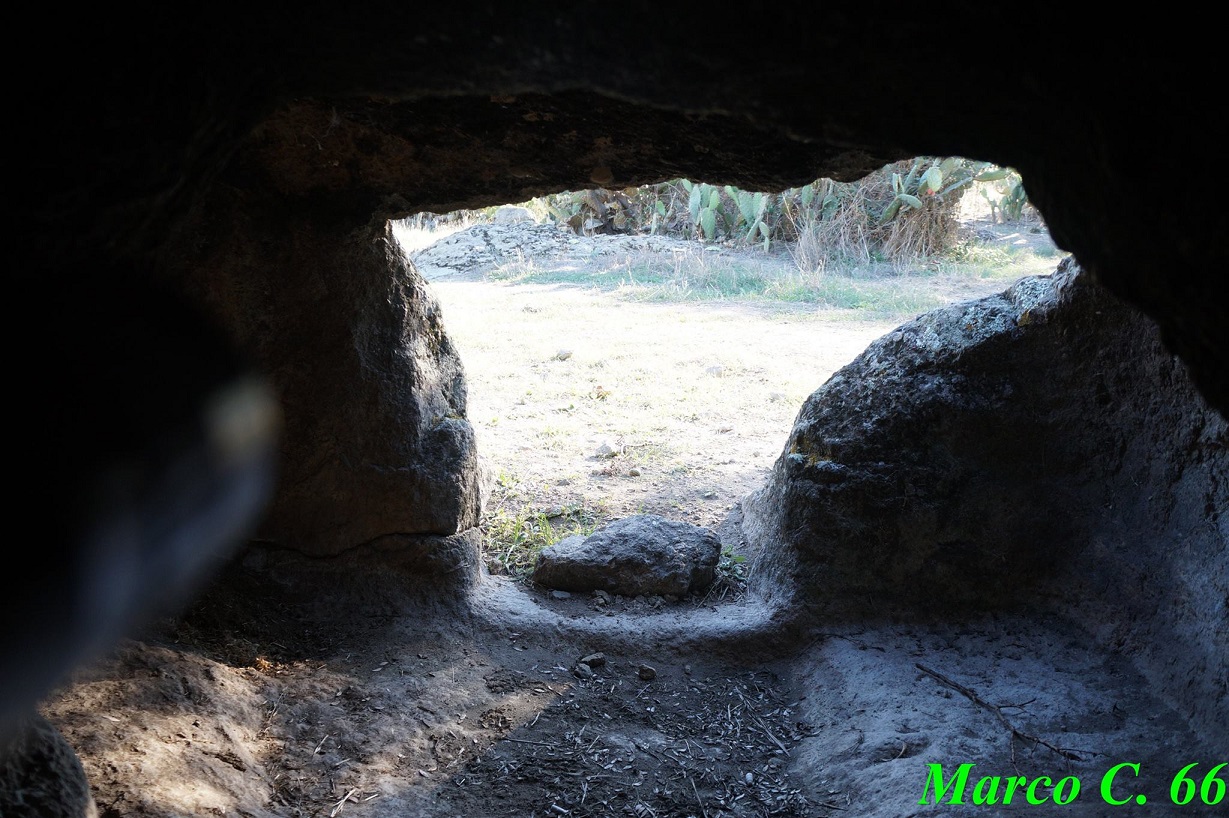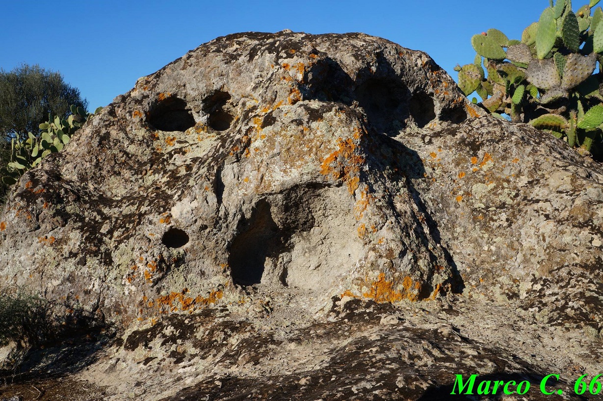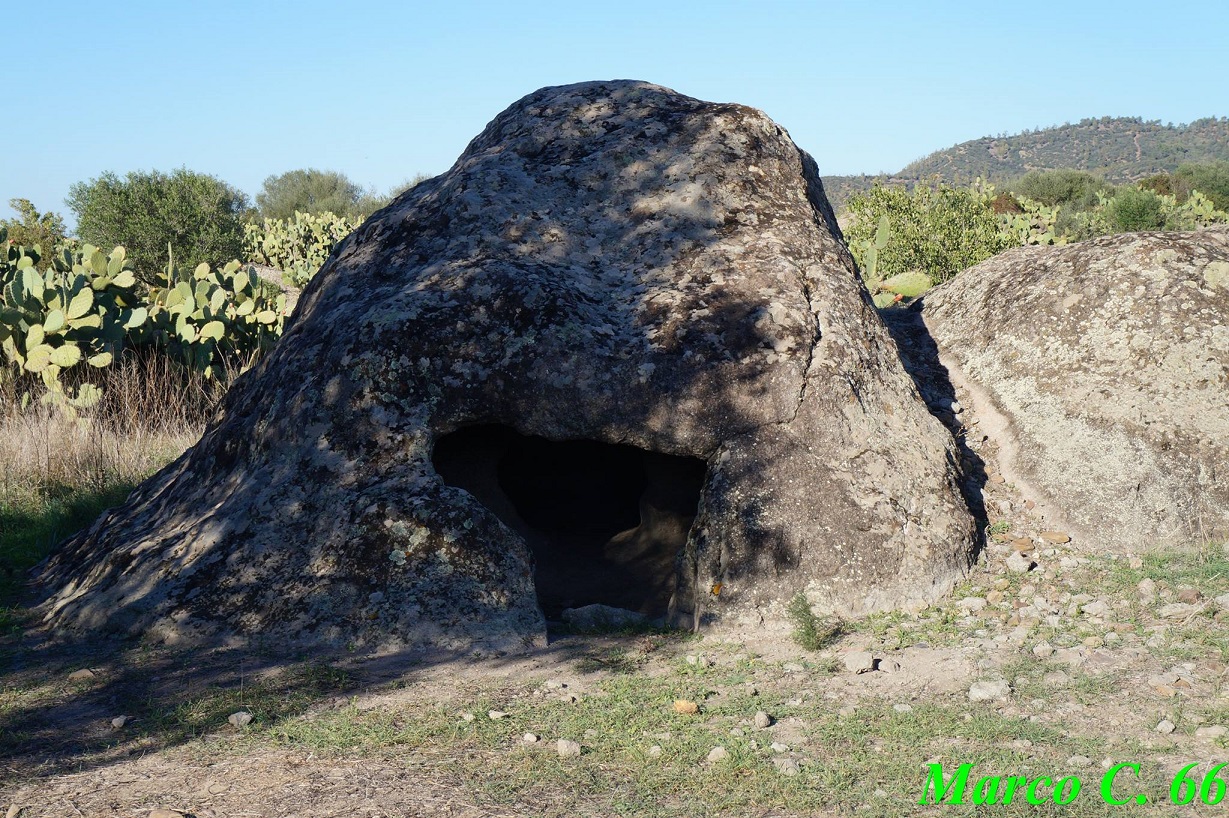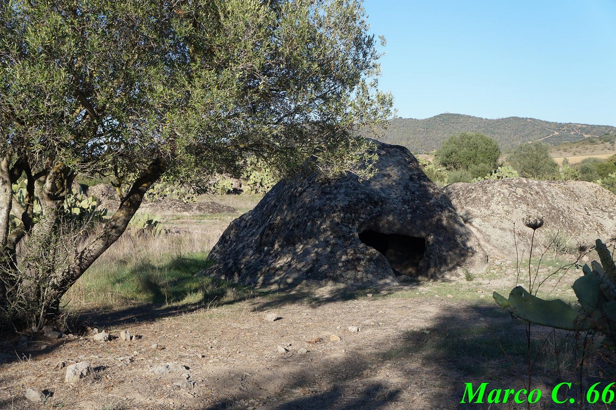 Questa tomba ipogeica scavata in un blocco di roccia erratico dista circa 300 m dal campo sportivo del paese. Nelle vicinanze si possono notare altri blocchi di roccia con coppelle.