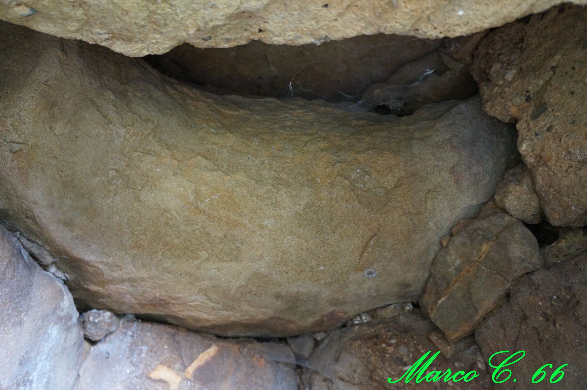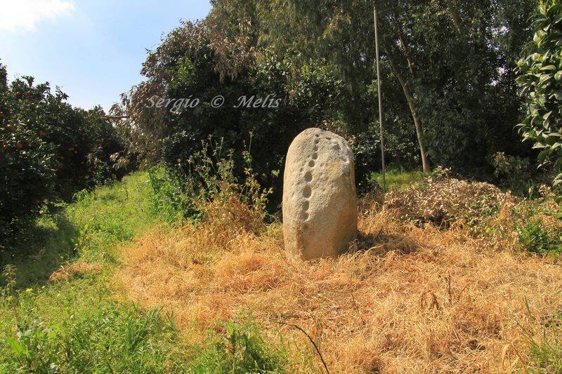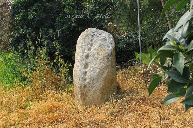 Menhir isolato, sul dorso del quale è riportato un allineamento di coppelle.