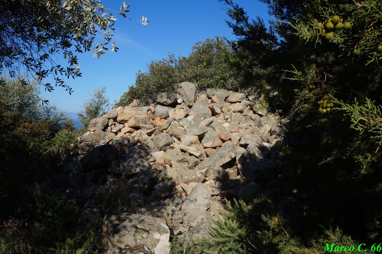 La torre centrale, che presenta allo svettamento un diametro di m 8 circa, è ben leggibile. Si conserva per nove filari di altezza in opera subquadrata regolare con blocchi di medie dimensioni inzeppati con pietrame a scaglie. La parte superiore interna è completamente ostruita dal crollo. Sono leggibili, seppure a fatica, strutture aggiunte, nascoste dalla vegetazione.