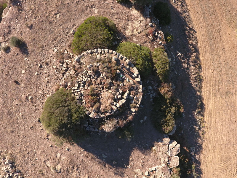 Il nuraghe Su Gunventu … per la sua costruzione è stato utilizzato il locale calcare bianco, spaccato in blocchi che per la natura del giacimento spesso presentano almeno una faccia liscia. Nello stato attuale e dopo l’asportazione del crollo, il monumento è conservato per almeno otto filari di pietre e un’altezza superiore ai 3 m. Lungo il perimetro sono presenti arbusti infastati (in particolare lentischi) che rischiano di compromettere la staticità del monumento. Circa 25 m ad O del Nuraghe e altimetricamente più in basso è stata costruita in tempi moderni una costruzione di incerta destinazione (sigh… nda) che si presenta con un muro di pietra cementata con porta in ferro e lucernaio superiore.