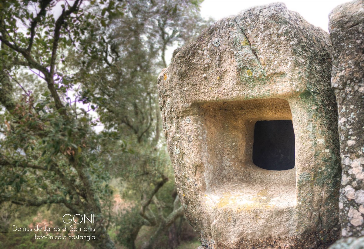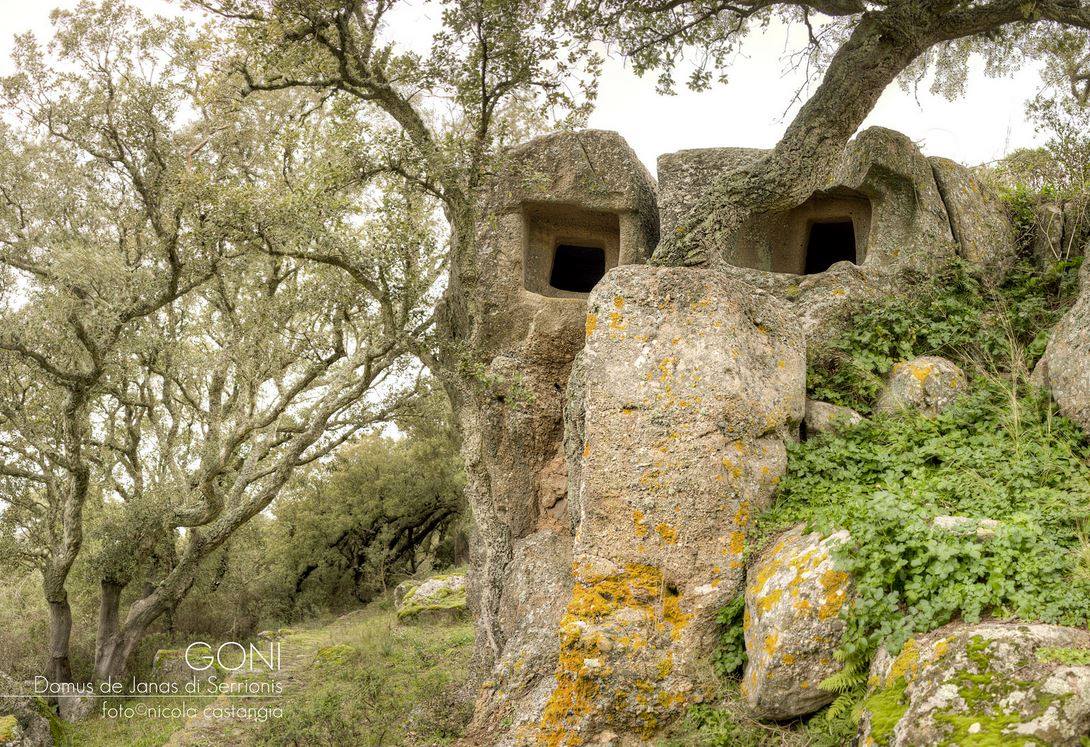 Le due domus, tra le quali si eleva un grande albero, sono distanti circa 1 km dal paese di Goni e sono scavate in una formazione rocciosa posta a circa 4 metri dal piano di calpestio.