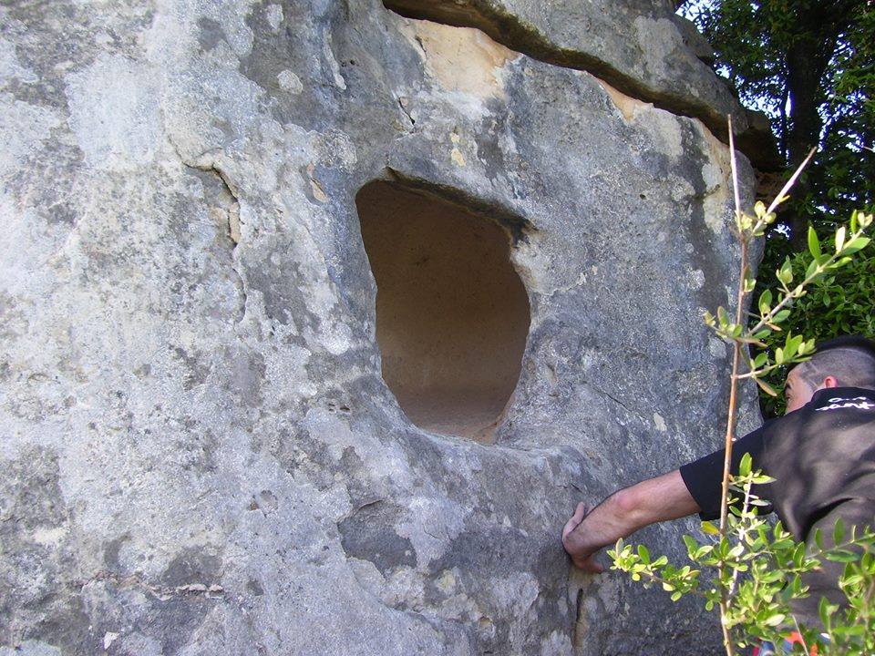 Bisogna fare un tratto in salita sui campi coltivati per poterlo osservare da vicino.