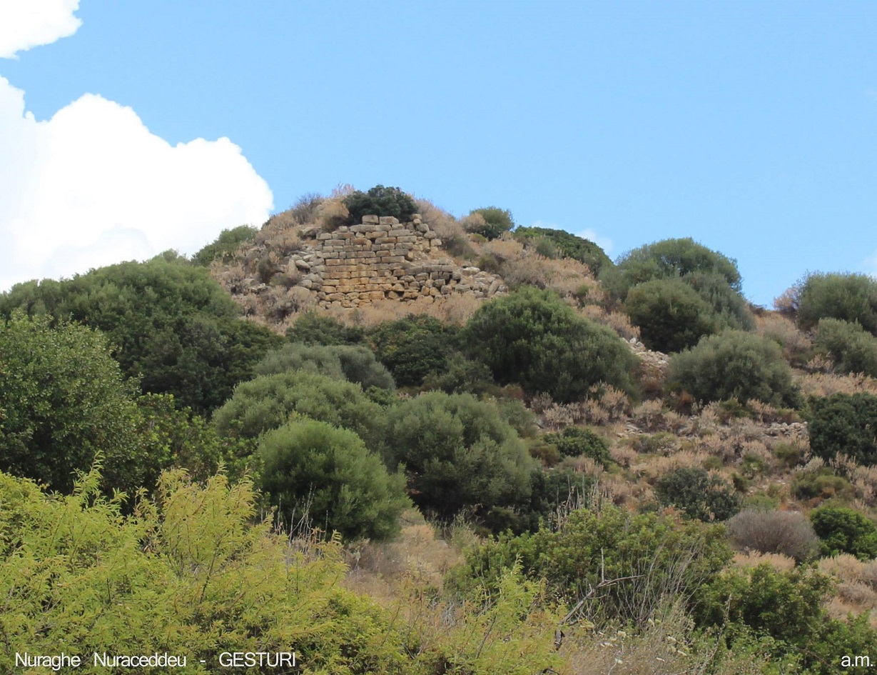 Percorrendo la strada (SS197) che da Barumini verso Gesturi, quasi alla fine di un lungo rettilineo, si scorge, sulla sinistra, la bella muraglia del nuraghe Nuraceddeu, arroccato sui primi rilievi delle pendici della giara di Gesturi.
