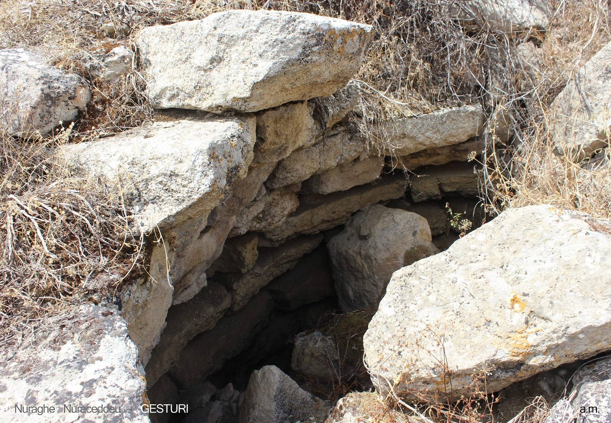 Questo nuraghe, che potrebbe riservare altre cose interessanti, si trova nel territorio di Gesturi.