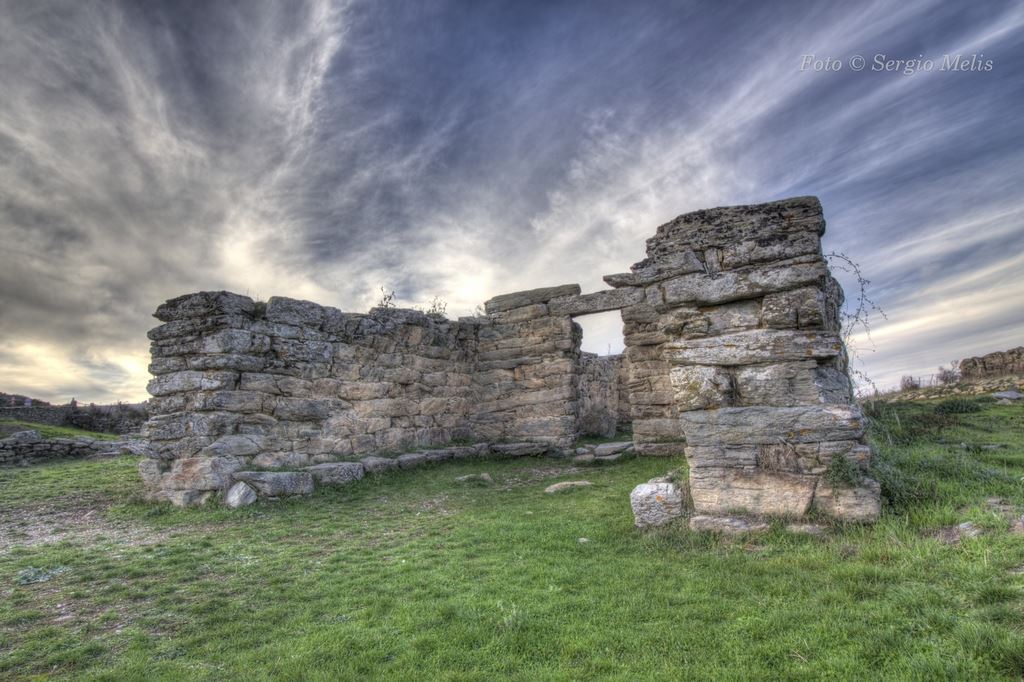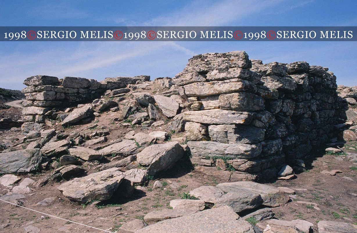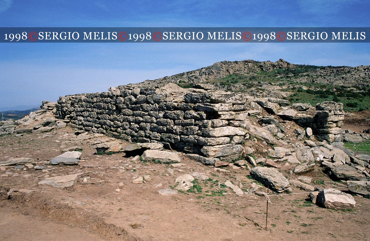 L’edificio è racchiuso entro un recinto ellittico (m 48,50 x 28; spessore murario di m 1,50) ridotto al solo filare di base, con ingresso ad O.