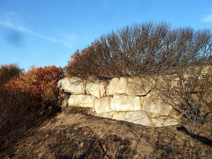 Area Sacra, probabilmente di età prenuragica. Si tratta di un bancone di roccia con nicchie, coppelle e vaschette artificiali. La cima della collina è coperta da pietre di crollo di un nuraghe.