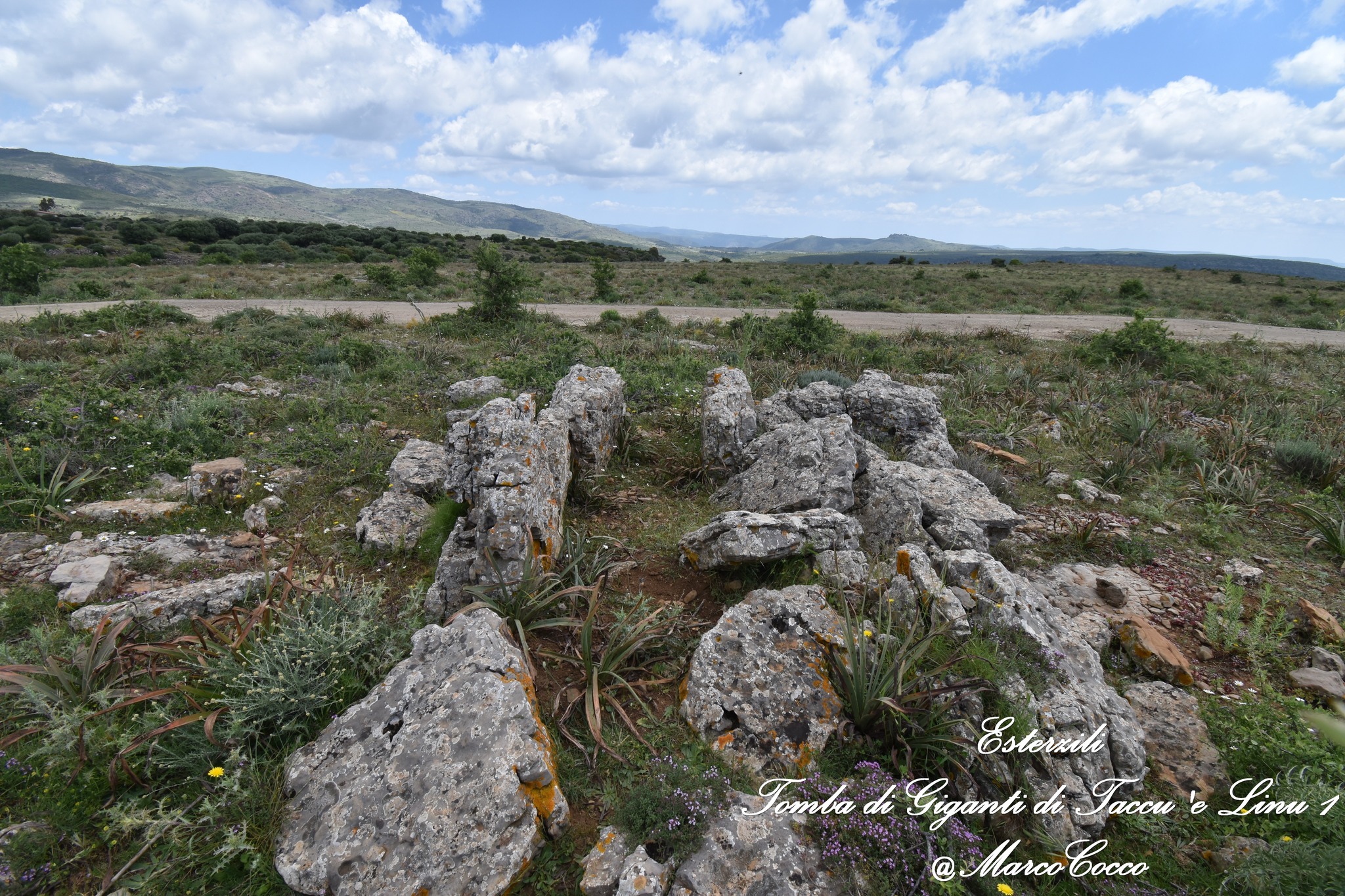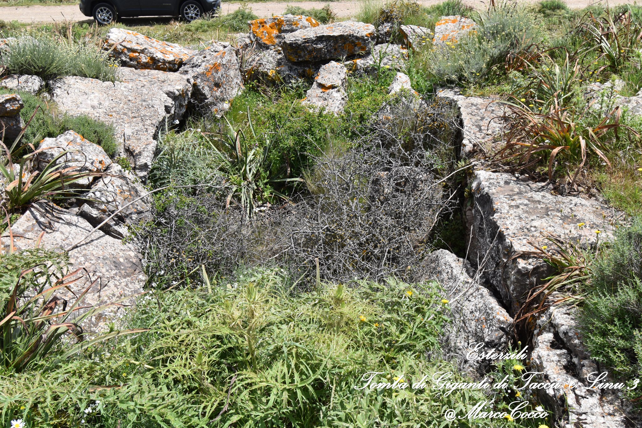 Le foto 1 e 2 riguardano la prima delle tre tombe, le foto 3,4 e 5 la Tomba 2 e le foto 6,7 e 8 la terza Tomba. Costruite sull’altipiano calcareo di Taccu e Linu, sono poste a circa 10 m di distanza l’una dall’altra, sono orientate a Sud-Est e variano come dimensione. Costruite con blocchi di roccia calcarea si presentato leggibili almeno per quanto riguarda il corridoio funerario.