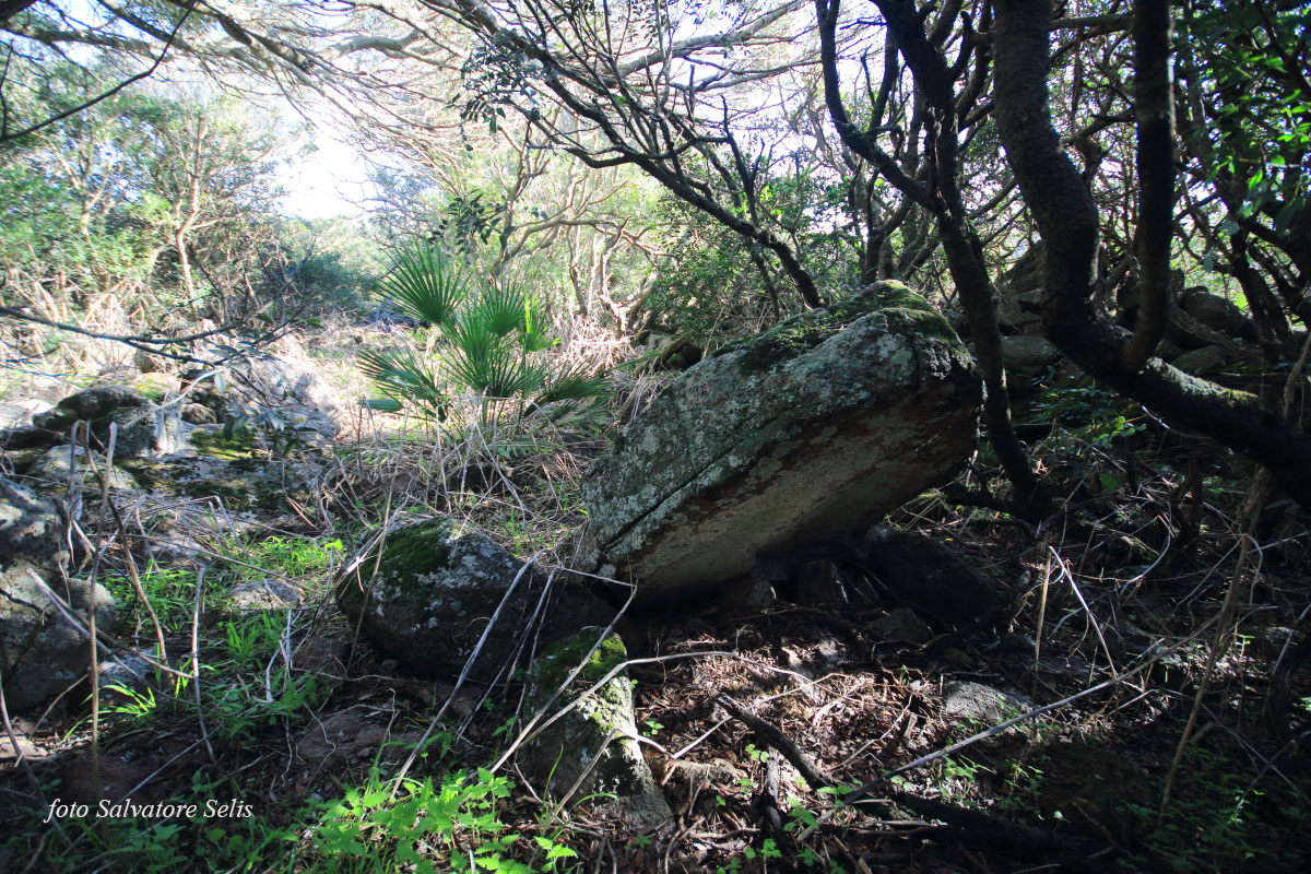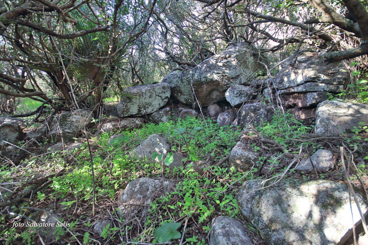 In questo territorio erano presenti due tombe dei giganti poste a circa 100 mt l’una dall’altra. La seconda è quella che si conserva in misura più leggibile, seppur, per la gran parte della sua estensione, risulti essere coperta dalla vegetazione e con le pareti ostruite dal crollo. La tomba che mostra la sua struttura con più difficoltà ha, con molta probabilità, la camera di forma rettangolare, realizzata con grossi massi di diverse dimensioni, appena sbozzati.