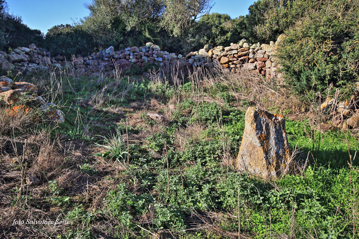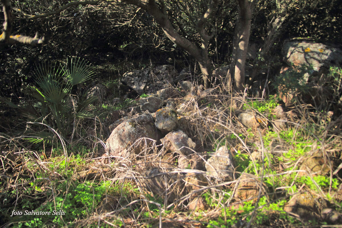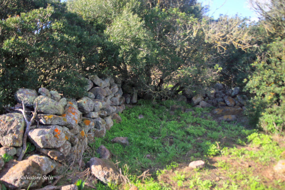 A circa 200 mt dalla seconda TdG si trovano delle costruzioni di origine nuragica, delle quali non è possibile definire l’uso, soprattutto a causa degli interventi di sovrapposizione eseguiti in epoche diverse (anche recenti) nonchè per la mancanza di studi archeologici. Le strutture residuali di probabile origine nuragica consistono in un recinto, che si presenta con mura ciclopiche, realizzate con massi appena sbozzati, e nei resti di due probabili capanne.