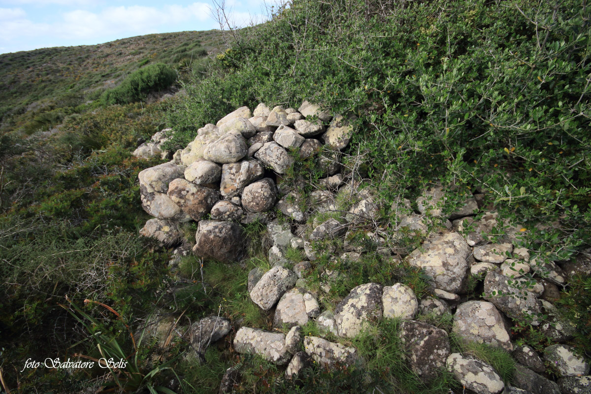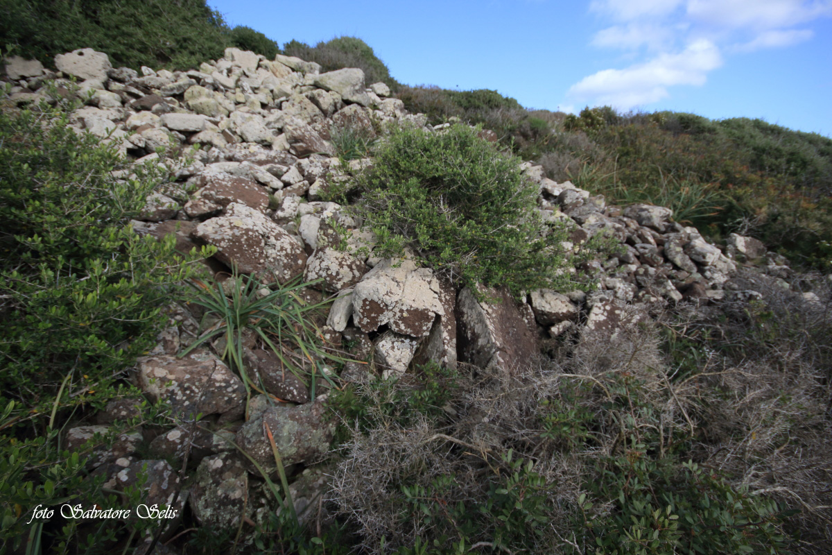 Il probabile villaggio nuragico occupa una vasta area posta nella china est del canale denominato S’ega Langonis. Se pur presente molta vegetazione si contano più di 30 capanne di forma circolare e rettangolare. Tutte sono implose/crollate anche a causa di scavi clandestini, ciò nonostante, di alcune di queste, restano diversi filari dei muri perimetrali. Tutte le strutture erano realizzate con massi poliedrici di piccolo e medio taglio, saldati a secco e disposti in filari più o meno regolari.