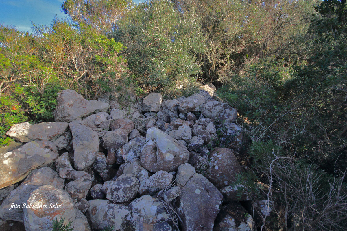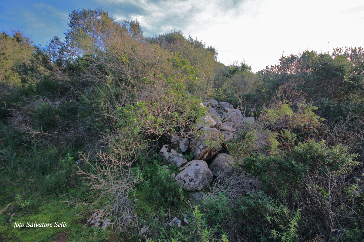 La tomba si presenta con una camera rettangolare absidata, con esedra e ingresso disposti a S. La camera è stata realizzata con massi di diverse dimensioni appena sbozzati, saldati a secco con zeppe di rincalzo. La tomba, sicuramente violata dai clandestini, presenta la camera tombale coperta da vegetazione e colma di pietre da crollo e di terra. Nel lato est della tomba sono presenti massi di crollo, sicuramente appartenenti al monumento. La parete ovest è occultata dalla vegetazione.