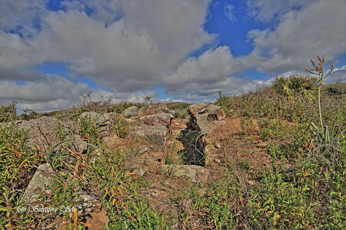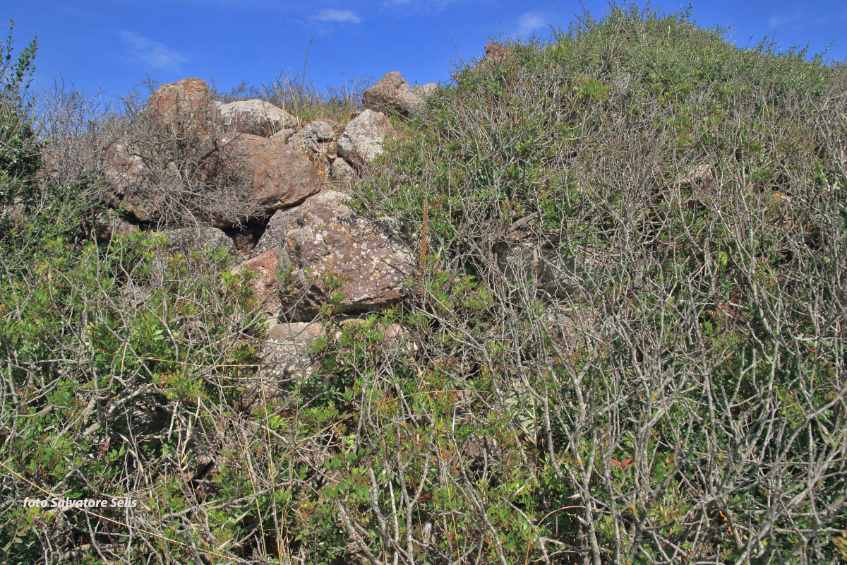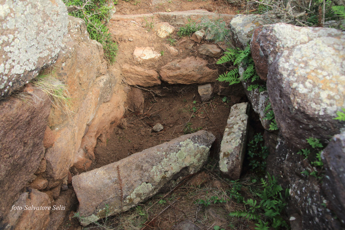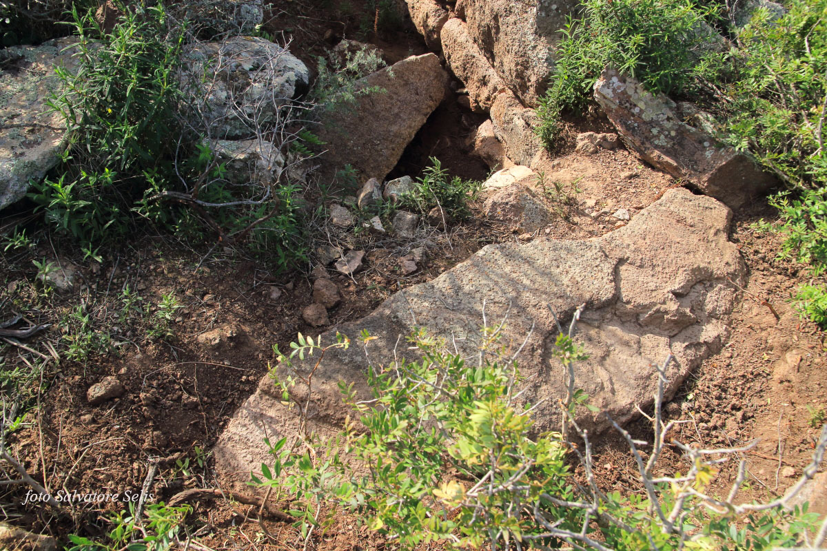 La tomba, ancora interrata, manifesta chiaramente le violazioni subite da clandestini. La camera è di forma rettangolare, realizzata con massi di diverse dimensioni, appena sbozzati, saldati a secco con zeppe di rincalzo. L’ingresso, rivolto ad ESE, si presenta con il portello completamente interrato, sormontato da un’architrave a forma di parallelepipedo i cui lati paiono perfettamente lisciati. La tomba era preceduta da una esedra di cui residuano in sito alcuni massi a N del corpo tombale.