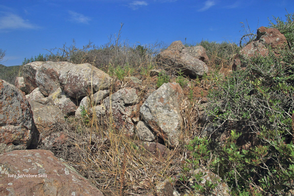Villaggio De Chirigu, quello posto a NO, dell’omonimo nuraghe, se pur immerso nella folta vegetazione, si presenta con diversi tratti murari ben distinguibili appartenenti a probabili capanne, per lo più di forma rettangolare. Nella parte estrema, a NNO è presente una struttura circolare (Ø di ca. 10 mt) che probabilmente fungeva da capanna delle riunioni, alla quale nella parte S è addossata una struttura rettangolare. Sono presenti numerosi frammenti di ceramica appartenente a varie epoche.