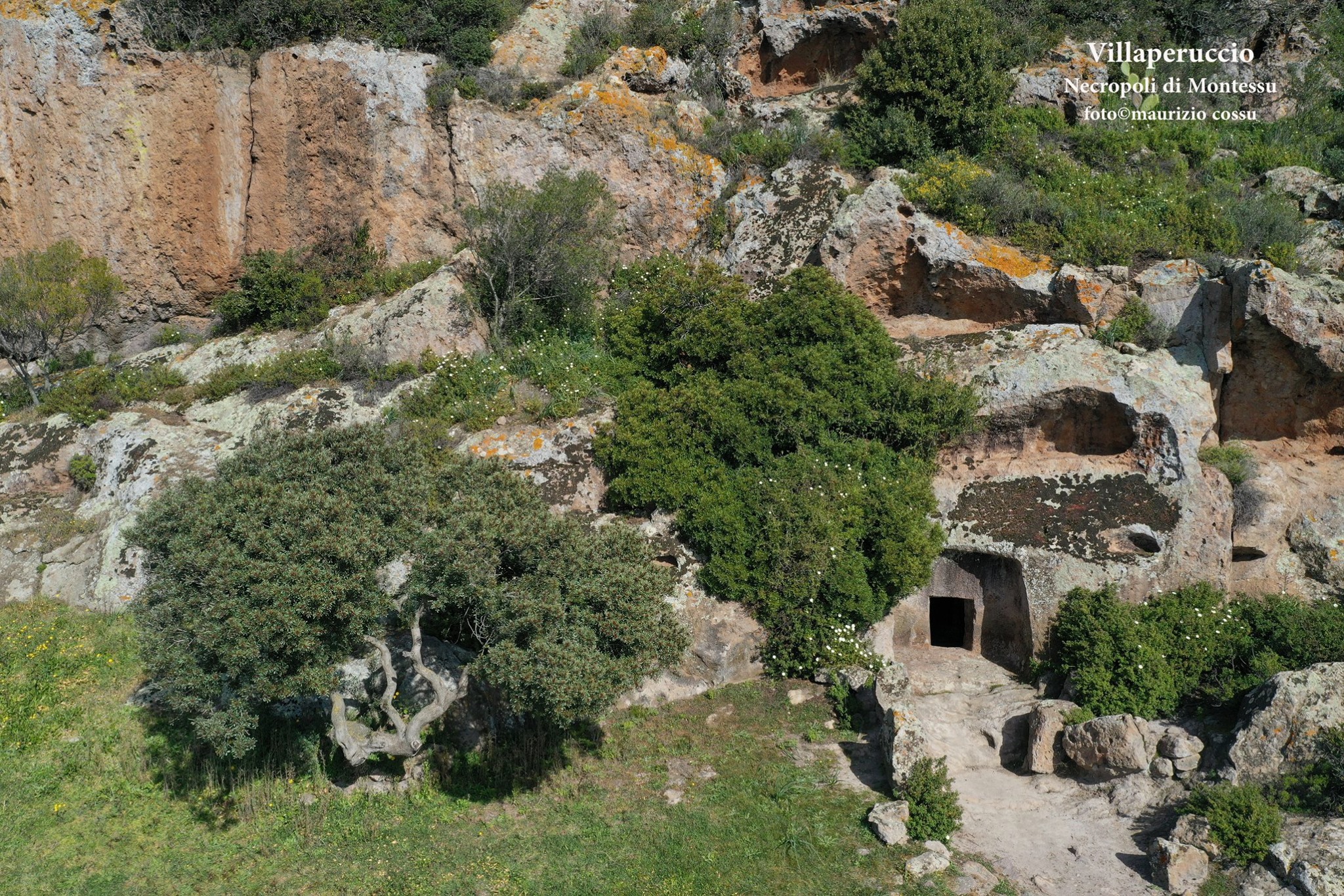 Scavata in un anfiteatro di roccia trachitica sul fianco meridionale del ‘silenzioso’ colle di sa Pranedda, è composta da oltre 40 tombe di varie dimensioni e planimetrie, allineate lungo la parete rocciosa in maniera simmetrica, secondo un disegno che pare preordinato. La necropoli di Montessu è una delle più significative e affascinanti testimonianze prenuragiche dell’Isola, in uso per un millennio e mezzo, dal Neolitico finale (3200-2800 a.C.) al Bronzo antico (1800-1600 a.C.).