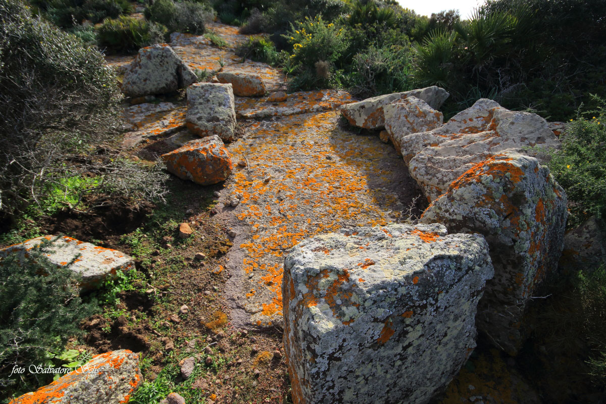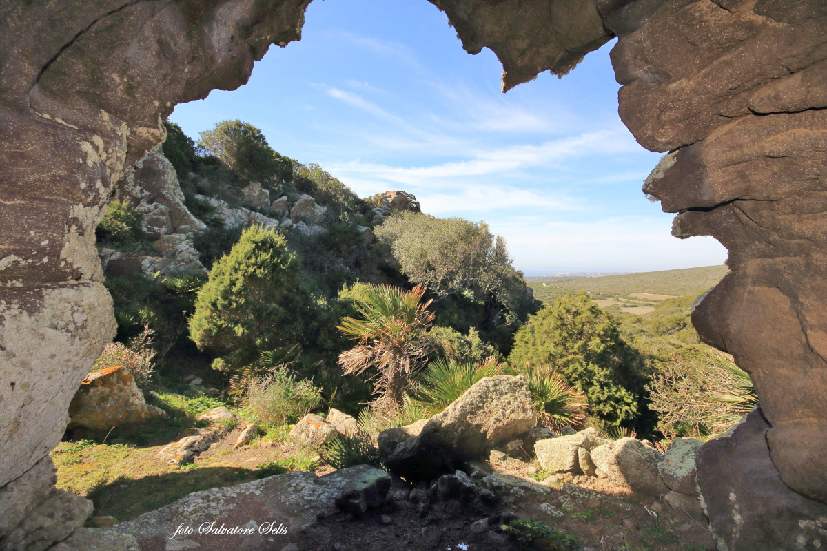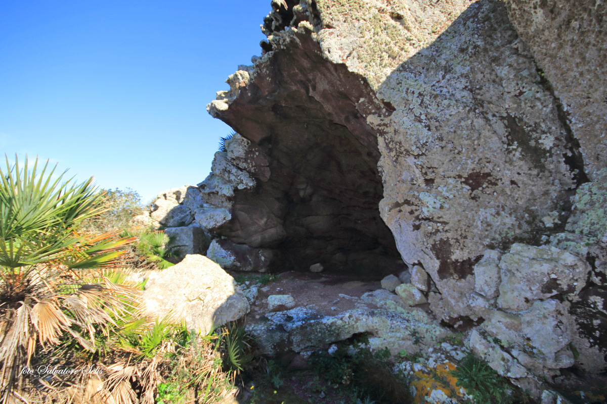 “La presenza dell’uomo nell’isola di Sant’Antioco è attestata dal V millennio a. C.13 in ripari sotto roccia, grotte, stazioni litiche e tombe.” Tafone che per la sua grandezza è stato utilizzato come riparo sotto roccia. E’ evidente l’utilizzo umano certificato anche dalle pietre di varie dimensioni, alcune in posizione originale e altre in misura cospicua nelle immediate vicinanze, che probabilmente formavano il muro a parziale chiusura della bocca.