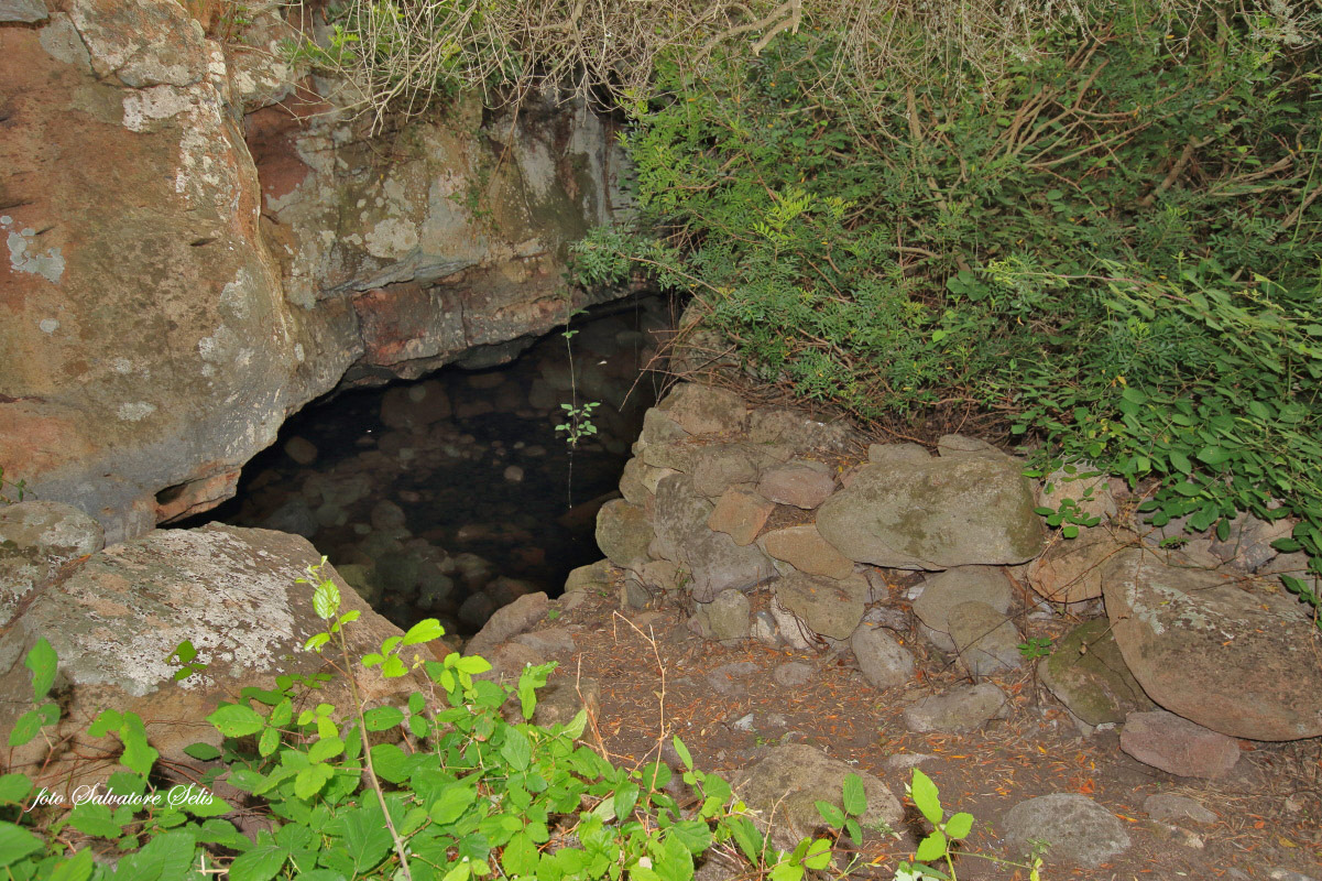 Ai piedi del nuraghe, sotto un costone roccioso, si trova una grotta utilizzata come deposito d’acqua. L’apertura della grotta è stata ristretta mediante la costruzione di strutture murarie, ottenute con la sovrapposizione di massi di trachite di varie forme e dimensioni, che hanno così consentito di aumentare la portata del deposito d’acqua. Il suo interno è ricolmo di pietre e melma.