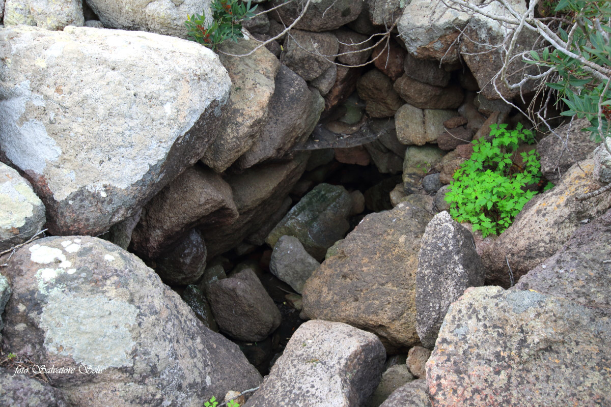 A sud del nuraghe e in prossimità delle capanne del villaggio, si trova una struttura di forma rettangolare scavata nel terreno per una profondità (visibile) di circa 150 cm, larga circa 120 cm e lunga circa 250 cm, fasciata con massi di trachite di varie dimensioni. L’interno è quasi per intero ricolmo di massi di crollo e vegetazione per cui è difficoltoso capirne correttamente dimensioni e struttura.