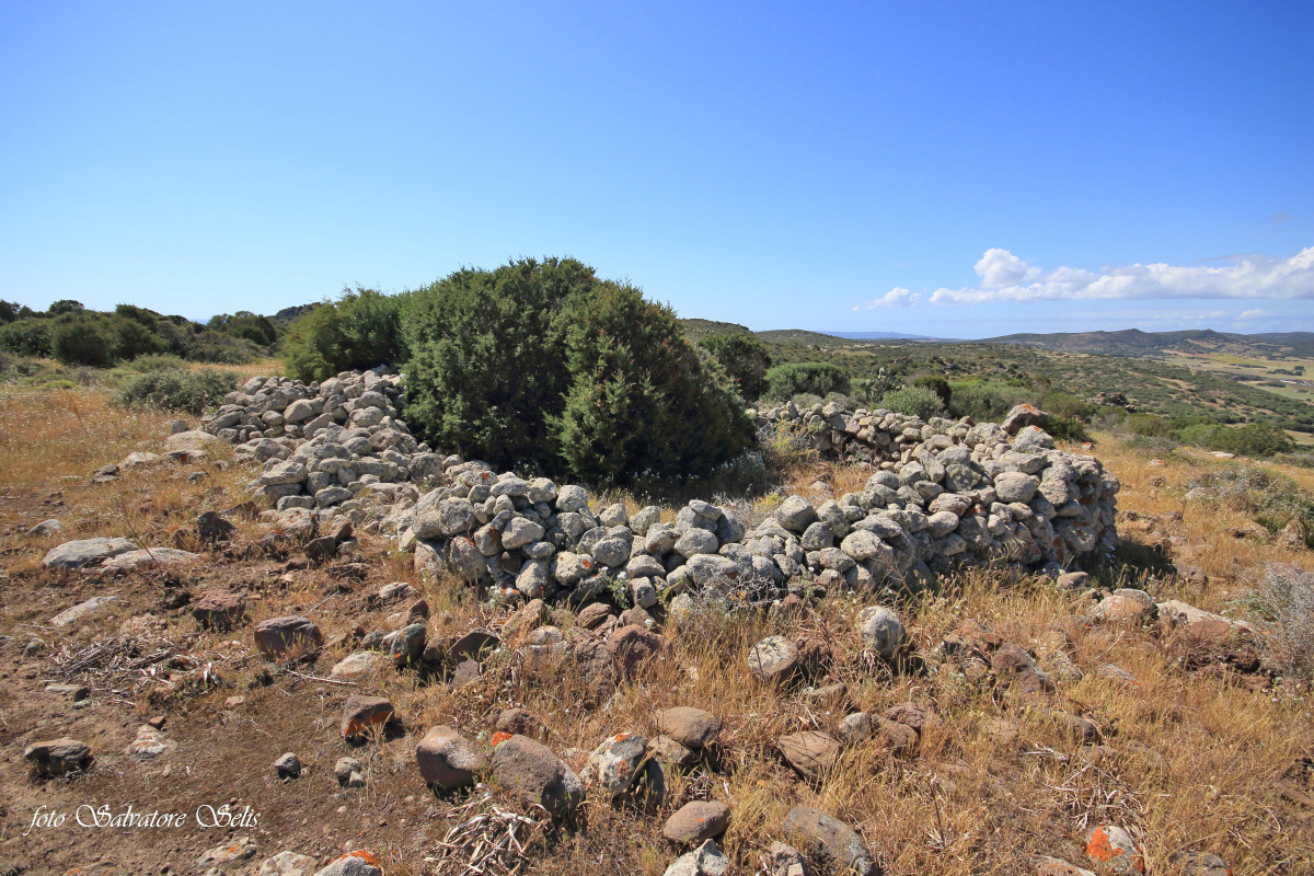 Nell’area sono presenti resti di numerose capanne facenti parte di un agglomerato nuragico; probabilmente alcune di queste sono state riutilizzate in tempi più recenti, benchè remoti. La maggior parte delle capanne ha forma circolare e presentano pochi resti della struttura originale, alcune 2/3 filari discontinui, altre un solo filare, di massi poliedrici di varie dimensioni. Nella zona NE è presente un recinto dove è situata 1 capanna rettangolare che è formata da 2 ambienti.