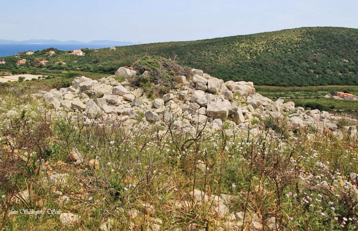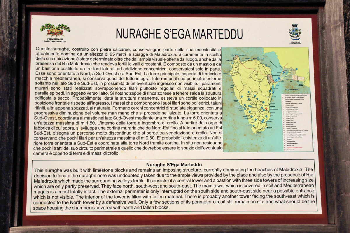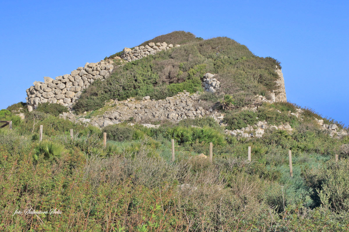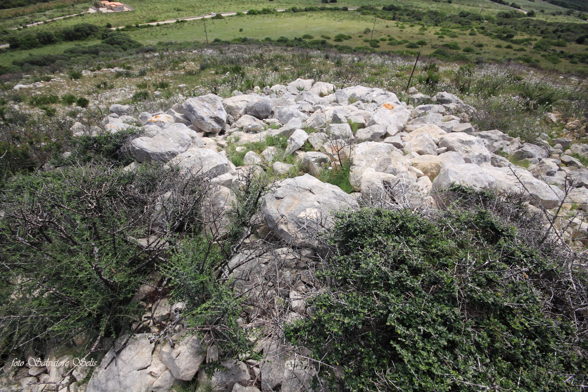 Nuraghe costruito con pietre calcaree, conserva gran parte della sua maestosità. E’ composto da un mastio, da un bastione costituito da tre torri laterali ad addizione concentrica. Sono orientate a N, a SO e a SE. La torre principale si conserva quasi integra. La torre orientata a SO conserva un’altezza max di m 1,80 ed ha l’interno ingombro di crollo. E’ probabile l’esistenza di un’ulteriore torre a SE, residuano pochi tratti del circuito e l’eventuale camera è coperto di terra e crollo.