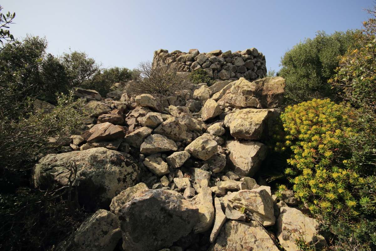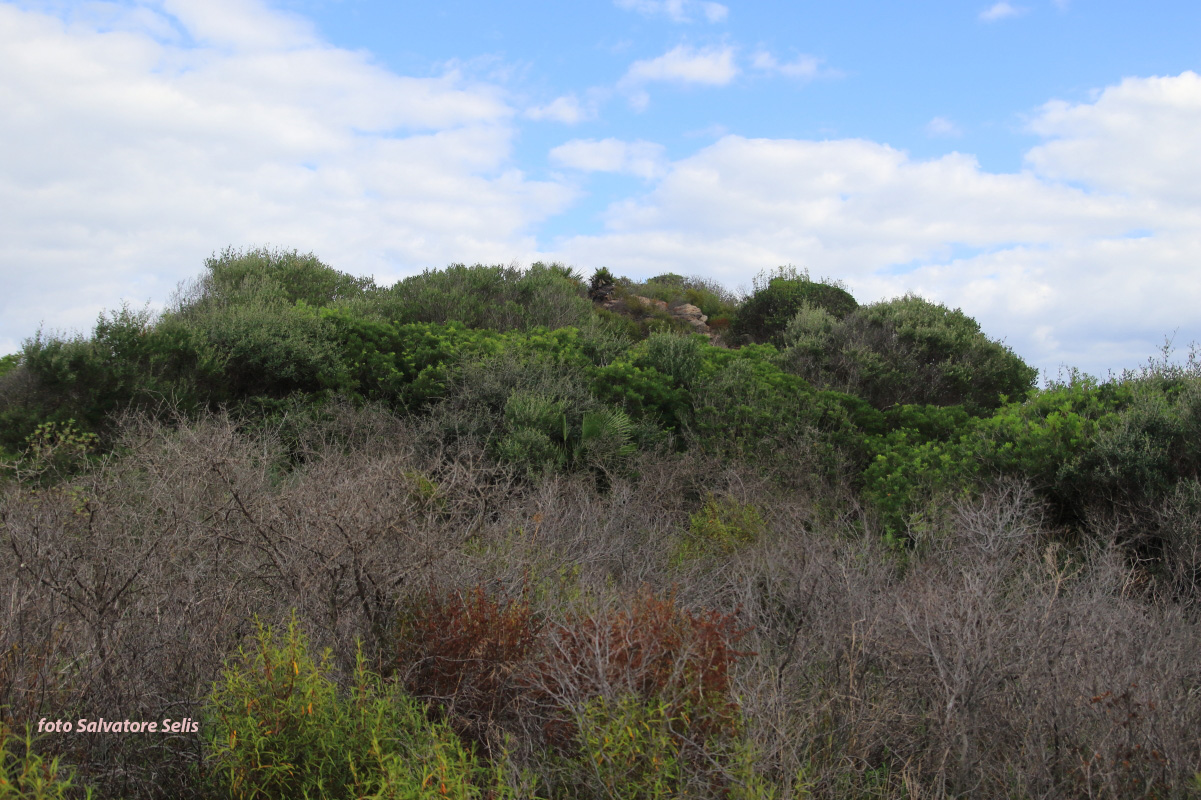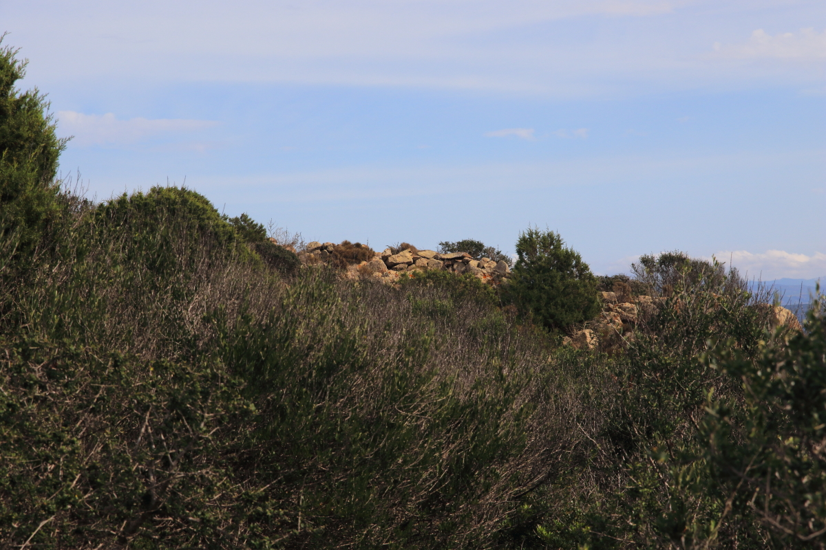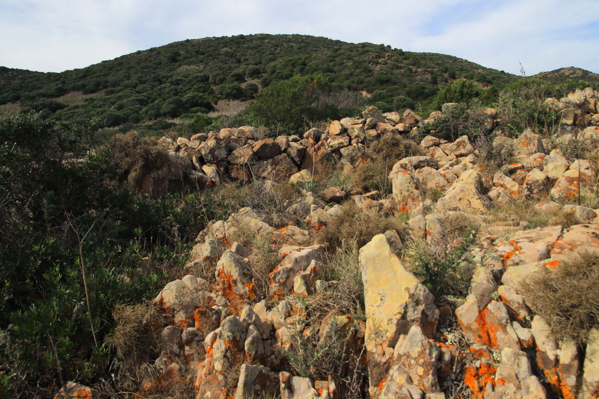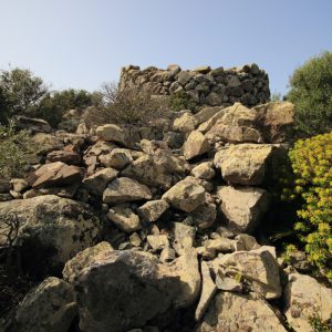 Del probabile villaggio si notano sparse nell’area diverse strutture, in alcuni casi fatte di pochi filari, di pseudo muri, con massi in posizione originale e con crollo all’interno del perimetro. Purtroppo a causa dei crolli e della folta e rigogliosa vegetazione fatta da alberi di olivastro, lentisco, fillirea, ecc, non è possibile determinarne tipo di struttura e dimensione. Nell’area, in superficie, si trovano parecchi frammenti ceramici.