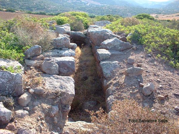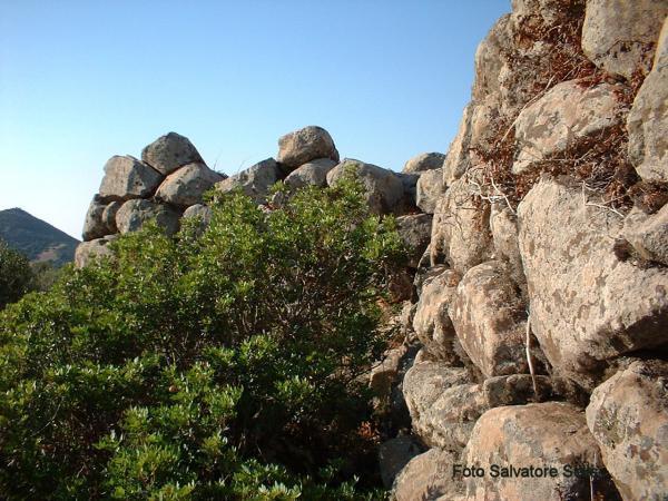 Nuraghe apparente monotorre diroccato di cui si conservano 5 / 6 filari. Avvolto dagli arbusti