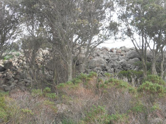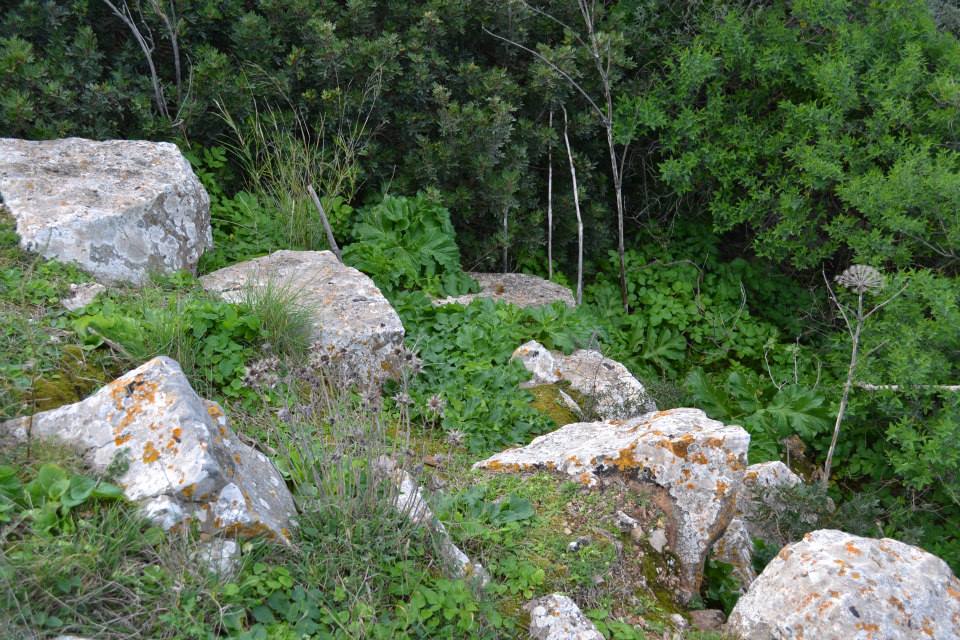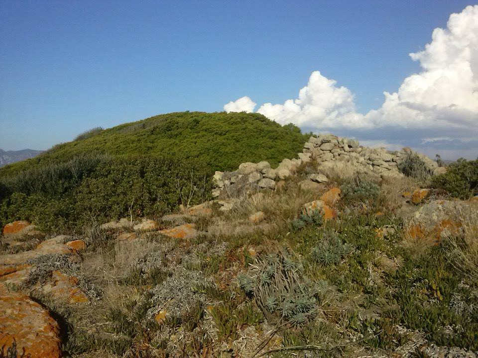dalla vegetazione e nascosto dal crollo, di esso si individuano alcuni tratti murari delle torri che componevano l’edificio. Alla base del colle, a settentrione, è presente un ipogeo, forse utilizzato come rifugio antiaereo. E’ anche probabile che sulla sommità del colle, verso meridione, nei terreni privati chiusi da recinzioni e inaccessibili, possano conservarsi le tracce di un agglomerato di capanne protostoriche.
