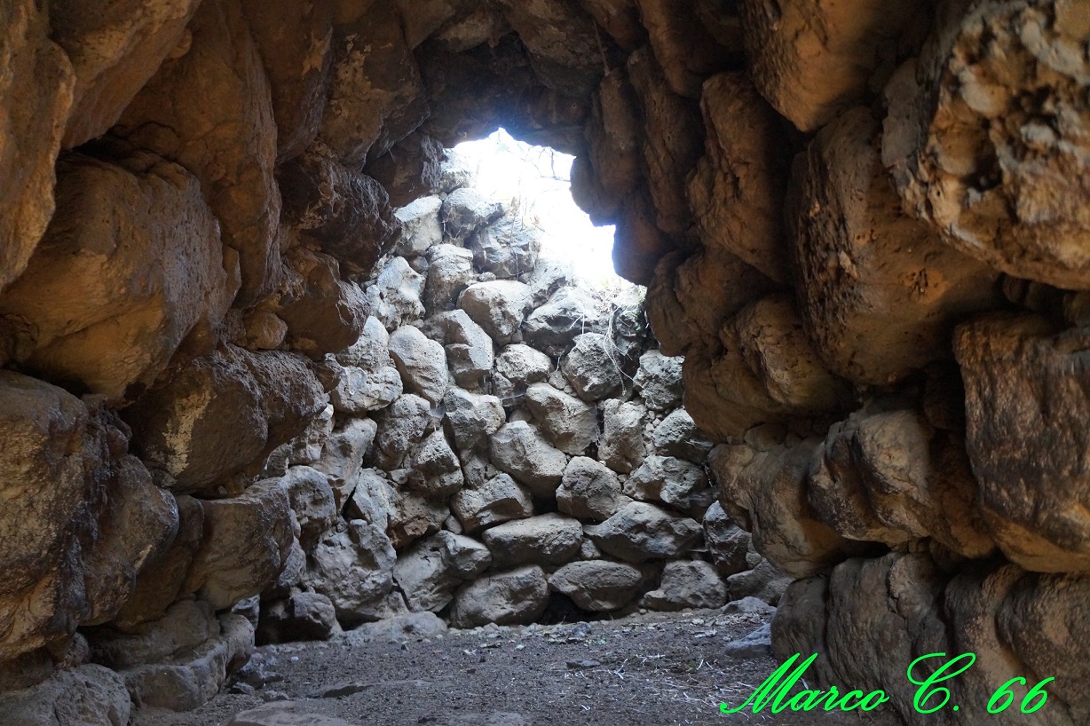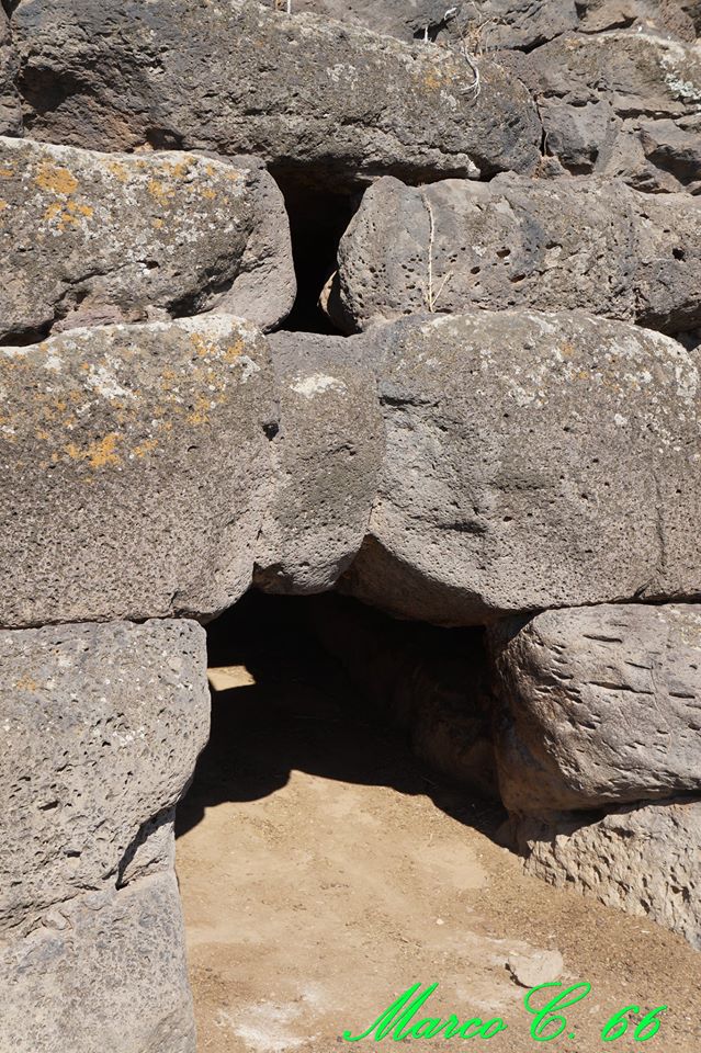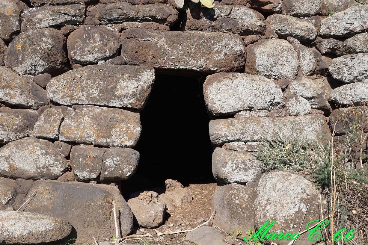 La camera è comunque accessibile dall’ingresso principale, che ha la particolarità di essere piuttosto alto rispetto all’altezza complessiva della volta. Una volta entrati, si trova a sinistra il vano scalare, ricavato nella muratura, per salire alla terrazza, completamente interrato e inaccessibile.