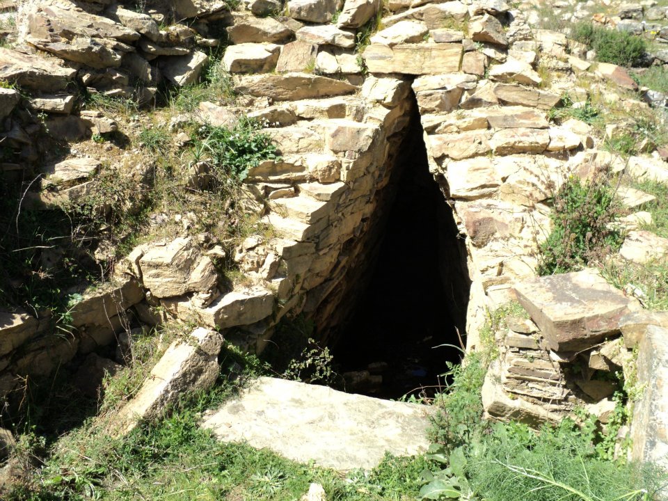 Il villaggio è costituito da tre pozzi sacri e una serie di capanne circolari. Il pozzo meglio conservato si trova nel settore settentrionale dell”area. Costruito con blocchi di scisto locale, si addossa a sud-ovest a una parete rocciosa naturale di modeste dimensioni. L”accesso al vano è decentrato rispetto all”asse della tholos. Quest”ultima è franata nella parte settentrionale. L”area antistante il vano d”ingresso al pozzo è delimitata da una serie di muri curvilinei a diverse quote.