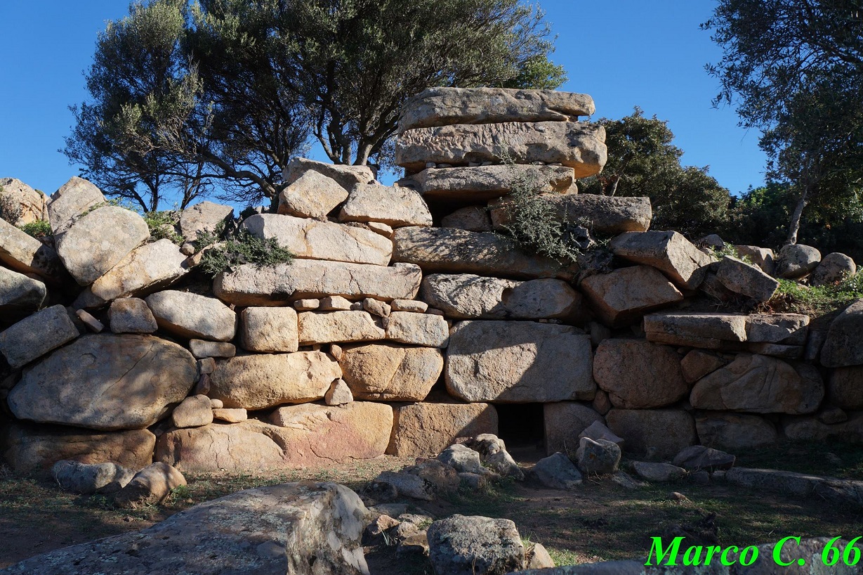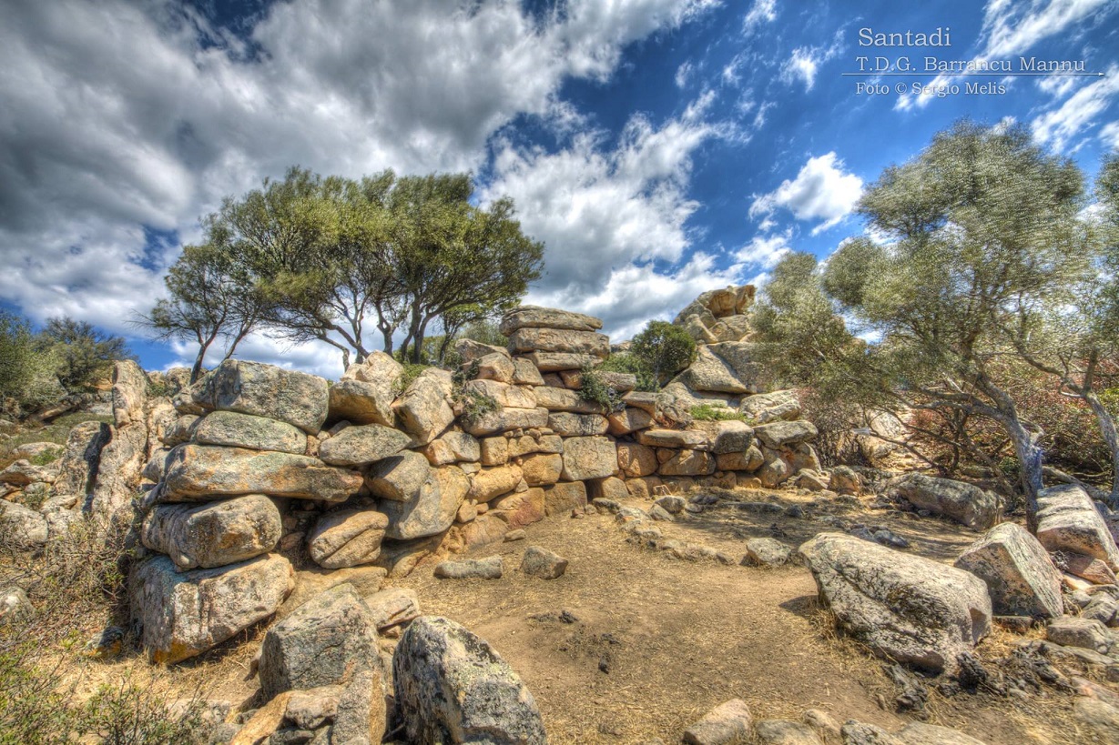La tomba di Barrancu Mannu, o di “Sa Tuerredda”, presenta il classico schema planimetrico delle tombe di giganti: corpo tombale absidato, corridoio coperto ed esedra arcuata. Il paramento murario esterno è costituito da blocchi di granito giallo-rosa di grandi dimensioni, sbozzati e sormontati da filari irregolari di pietre variamente poliedriche e di grossa pezzatura. Del giro absidale, concluso in origine da file ordinate di conci a coda, residuano due o tre filari.