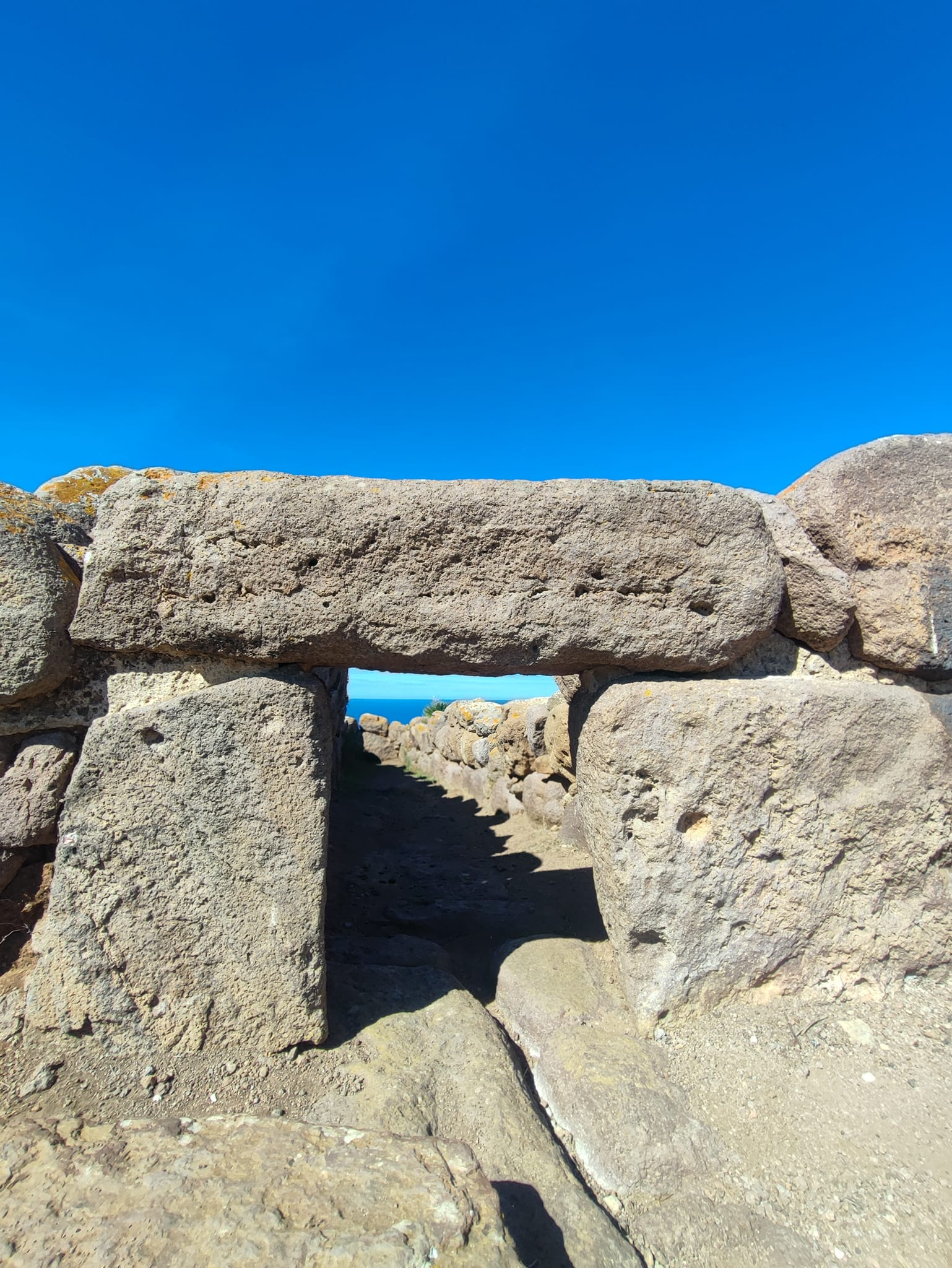 I conci posti di coltello alla base, sono di grandi dimensioni, mentre nella parte superiore si trovano pietre più piccole. La tomba durante gli scavi dell’inizio del secolo scorso condotti dal Taramelli, presentava un’architrave a dentelli ora scomparsa. L’ingresso doveva essere sormontato da una “stele a dentelli” cioè da una pietra incisa con profonde tacche originariamente posta sopra l’architrave della quale un frammento è stato rinvenuto fra il materiale di crollo. Il monumento risulta edificato durante il bronzo Medio II, tra la fine del XV e l’inizio del XIII secolo A.C.. (Comune di Sant’Antioco)