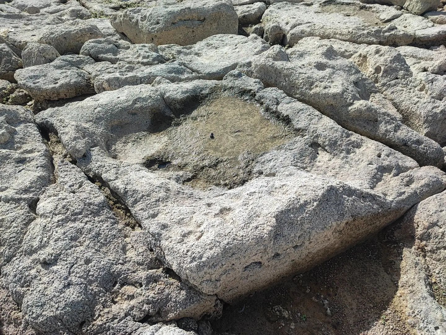 Da notare la lavorazione della pietra e la presenza di ben 6 tombe in un’area così ridotta.