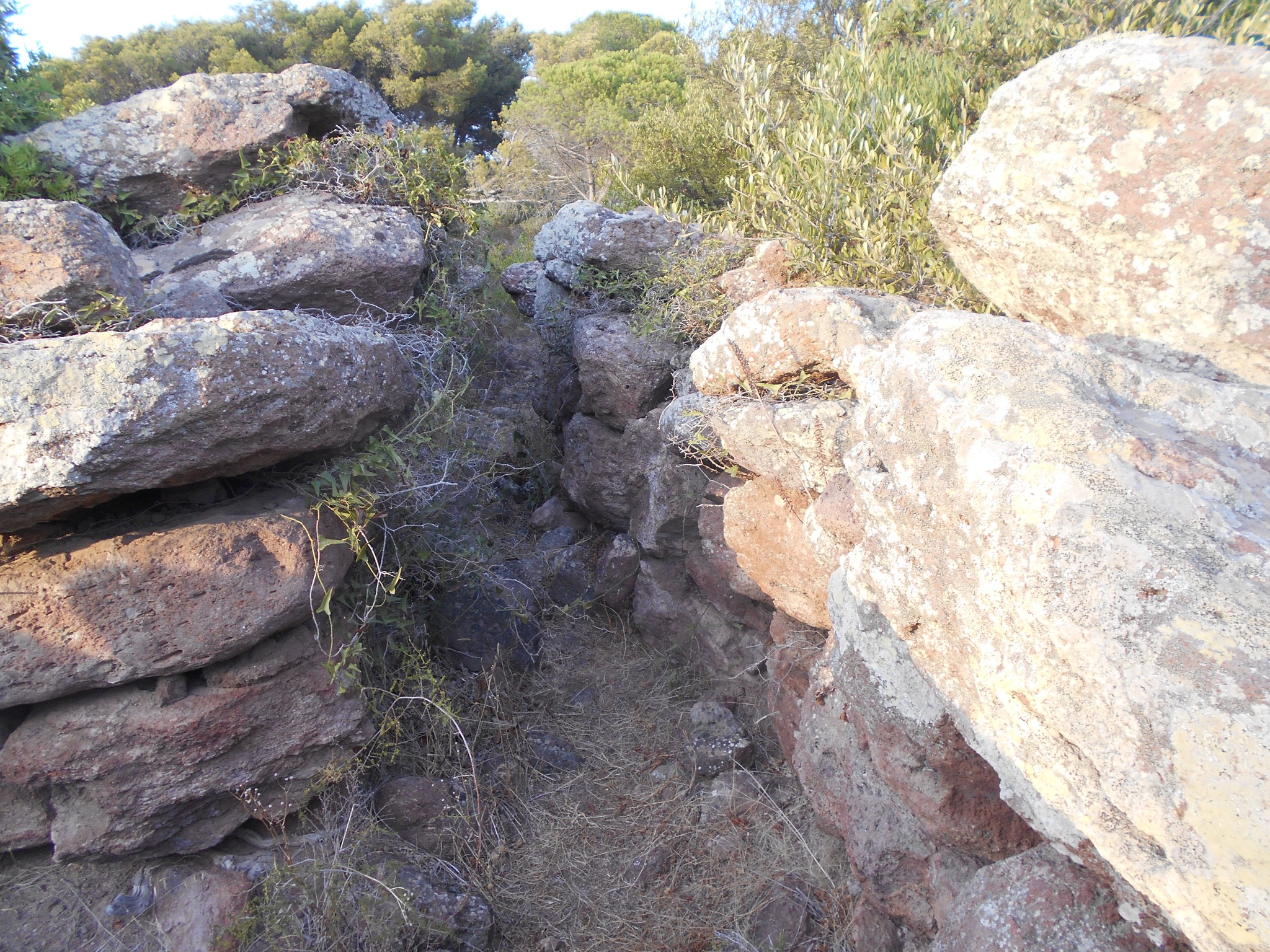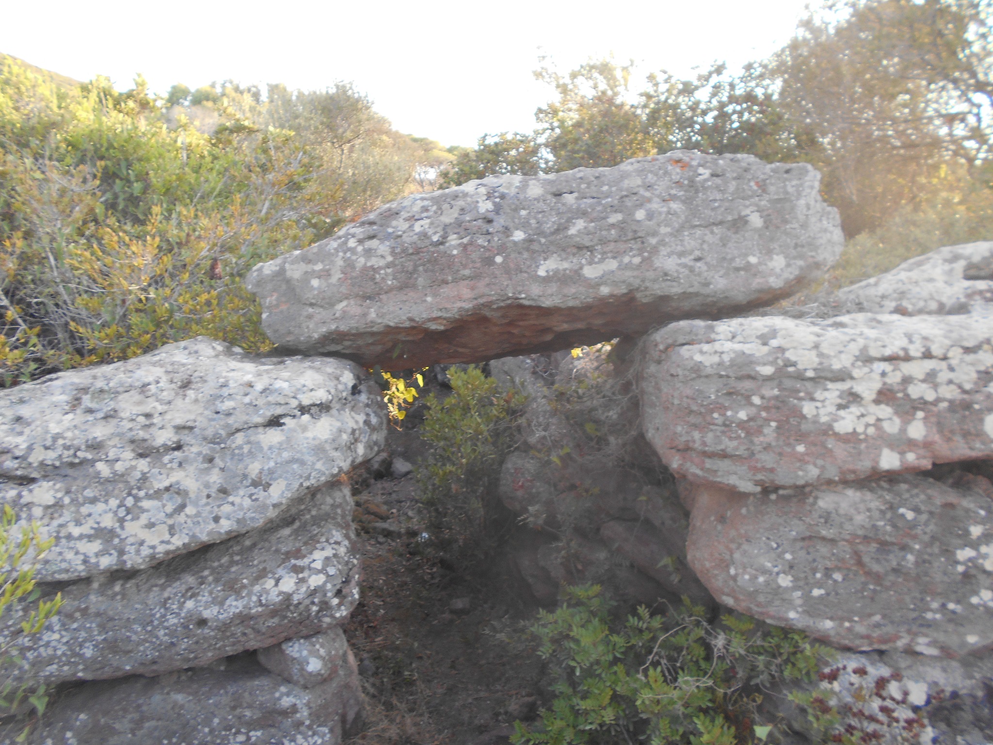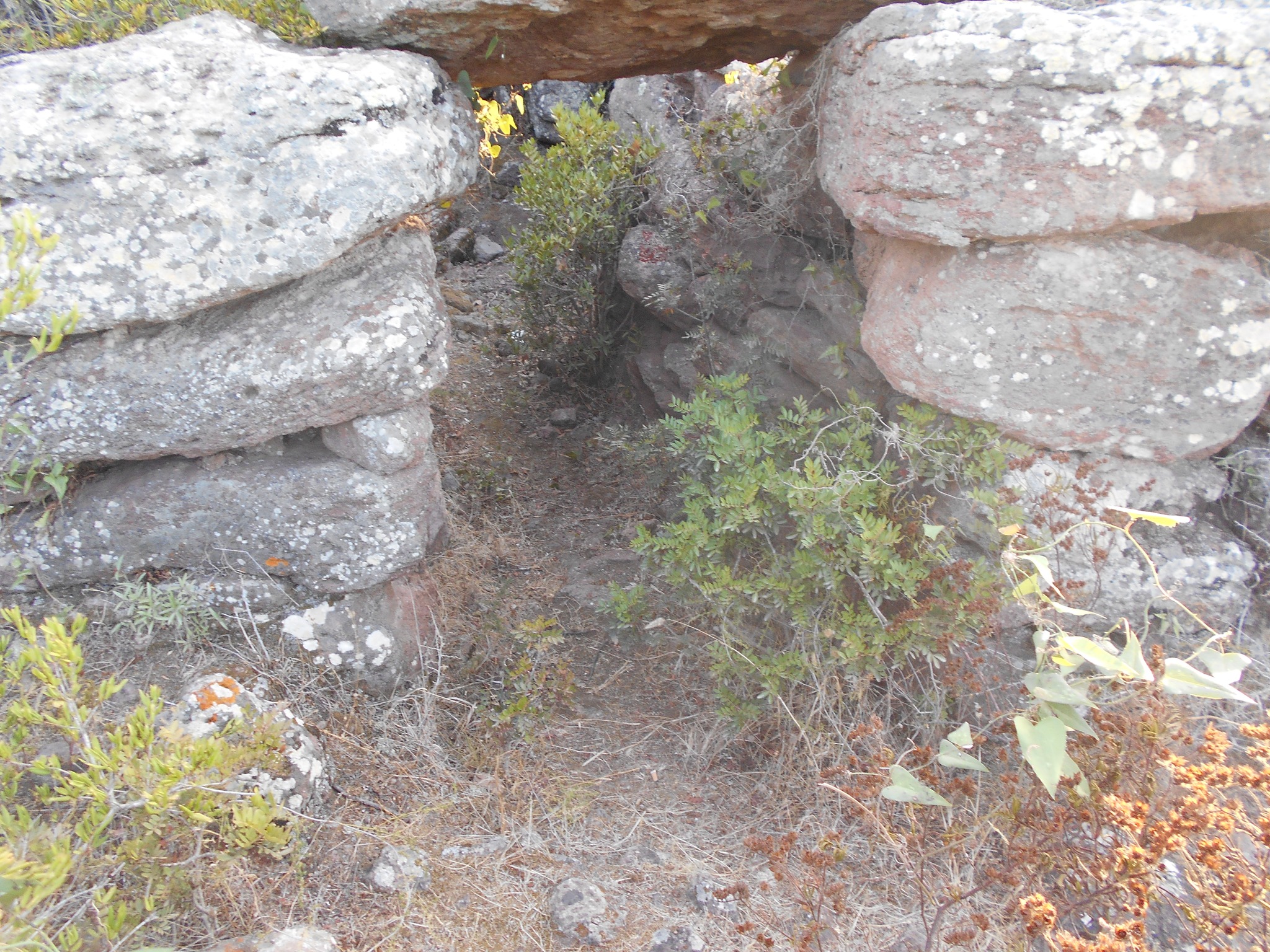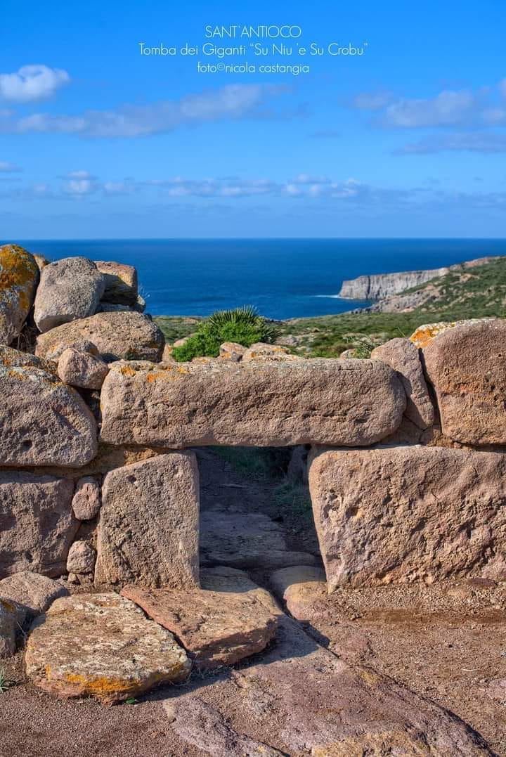 I conci posti di coltello alla base, sono di grandi dimensioni, mentre nella parte superiore si trovano pietre più piccole. La tomba durante gli scavi dell’inizio del secolo scorso condotti dal Taramelli, presentava un’architrave a dentelli ora scomparsa. L’ingresso doveva essere sormontato da una “stele a dentelli” cioè da una pietra incisa con profonde tacche originariamente posta sopra l’architrave della quale un frammento è stato rinvenuto fra il materiale di crollo.Il monumento risulta edificato durante il bronzo Medio II, tra la fine del XV e l’inizio del XIII secolo A.C.. (Comune di Sant’Antioco)