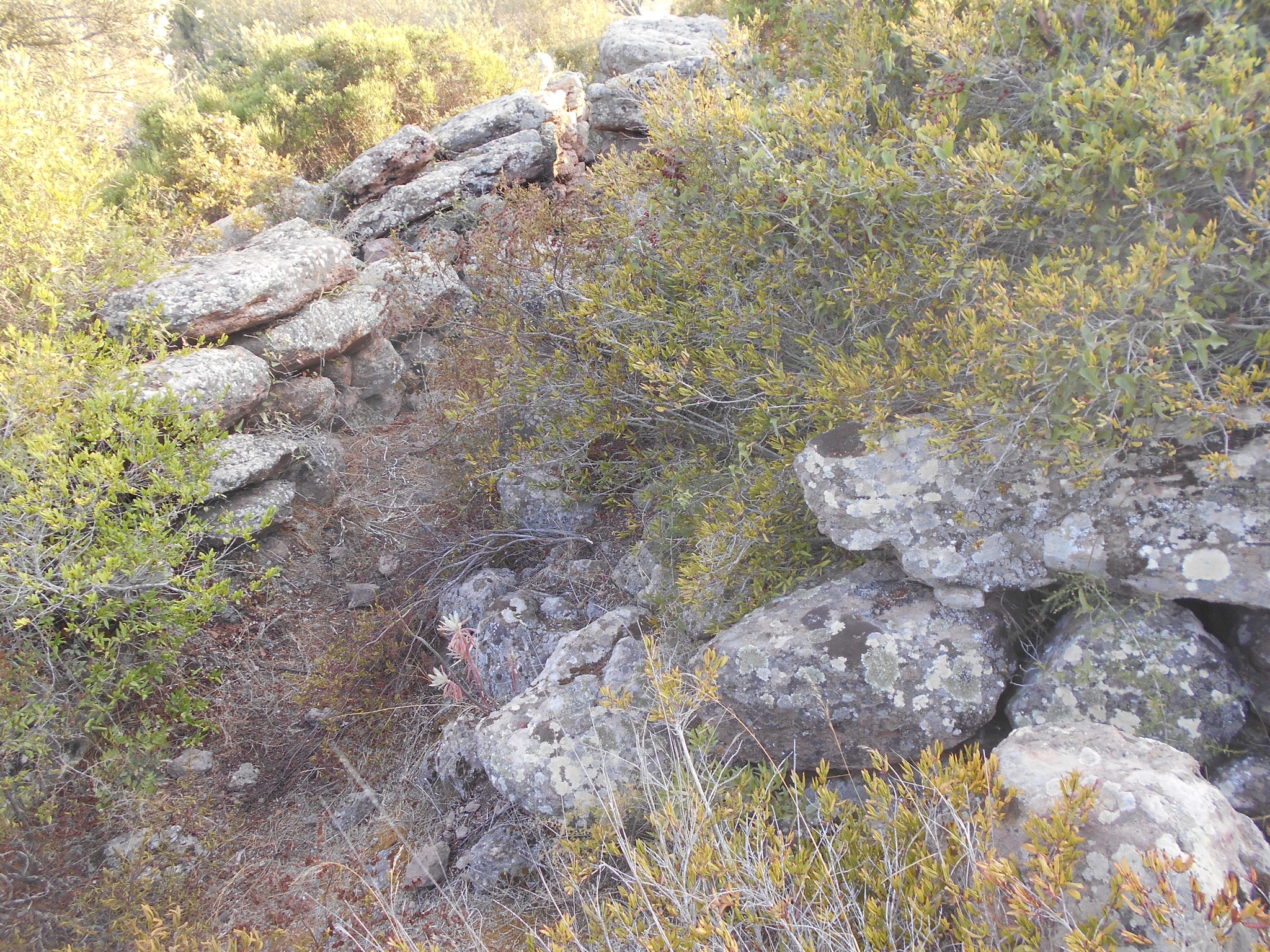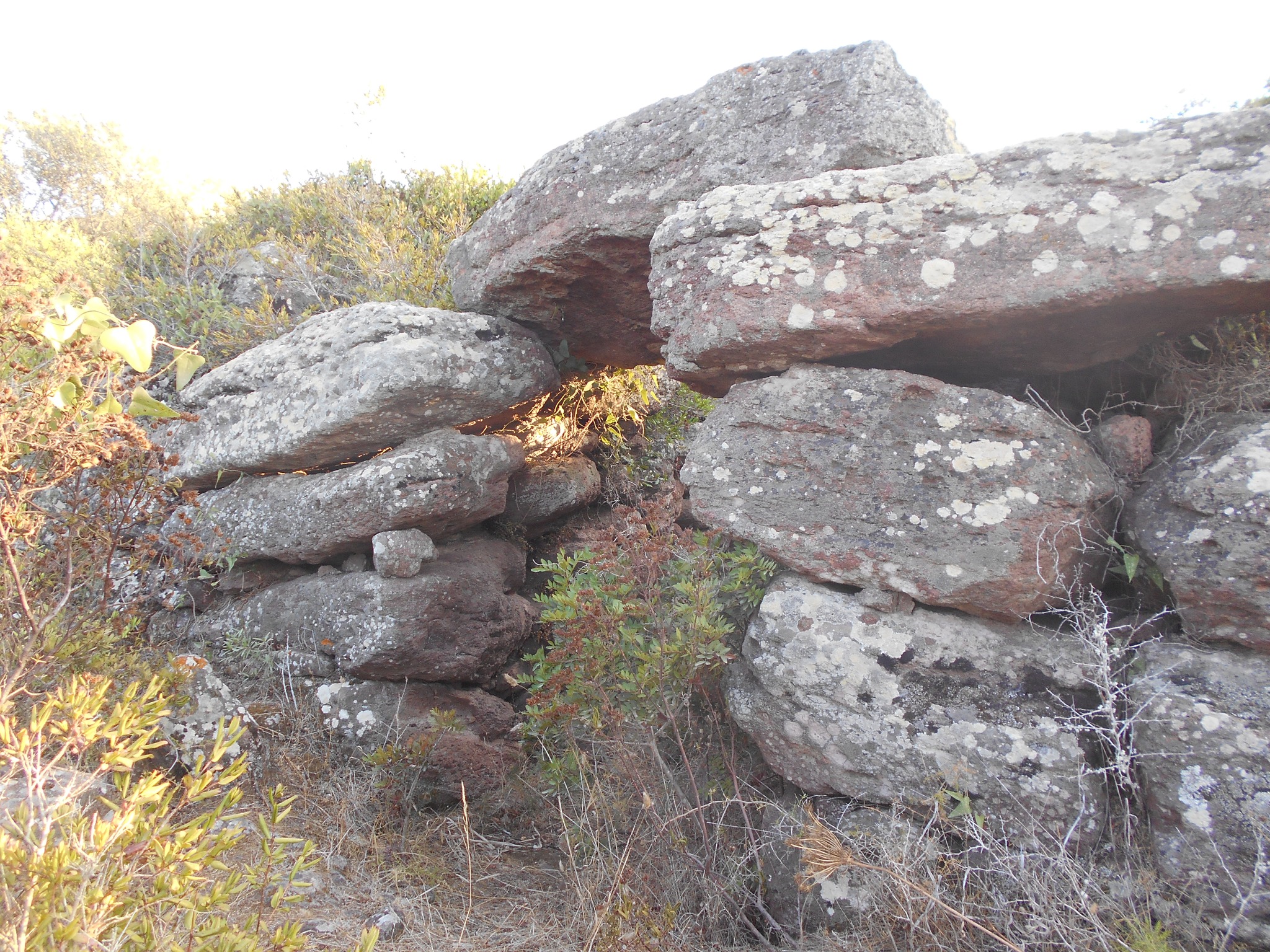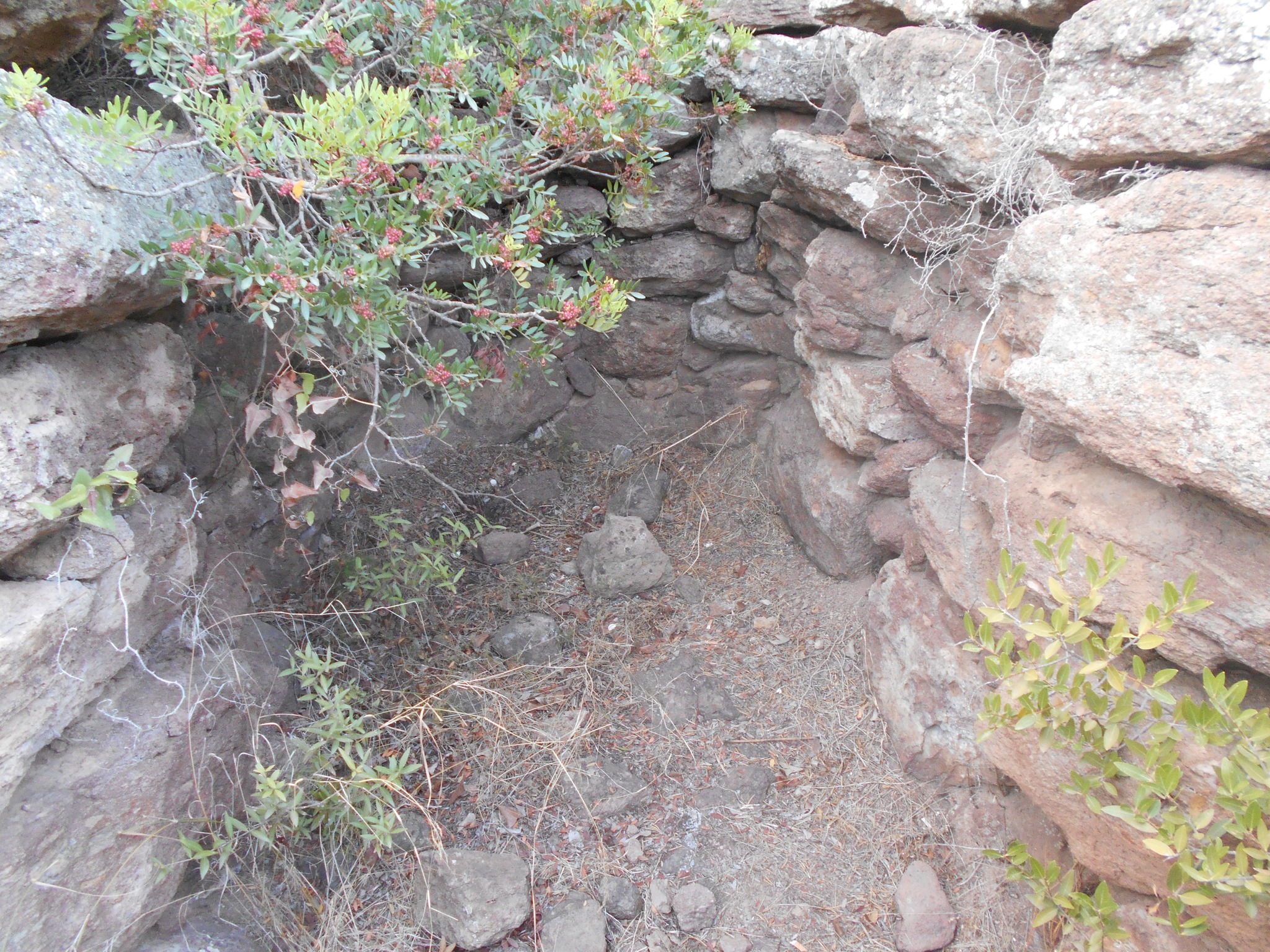 I conci posti di coltello alla base, sono di grandi dimensioni, mentre nella parte superiore si trovano pietre più piccole. La tomba durante gli scavi dell’inizio del secolo scorso condotti dal Taramelli, presentava un’architrave a dentelli ora scomparsa. L’ingresso doveva essere sormontato da una “stele a dentelli” cioè da una pietra incisa con profonde tacche originariamente posta sopra l’architrave della quale un frammento è stato rinvenuto fra il materiale di crollo.Il monumento risulta edificato durante il bronzo Medio II, tra la fine del XV e l’inizio del XIII secolo A.C.. (Comune di Sant’Antioco)