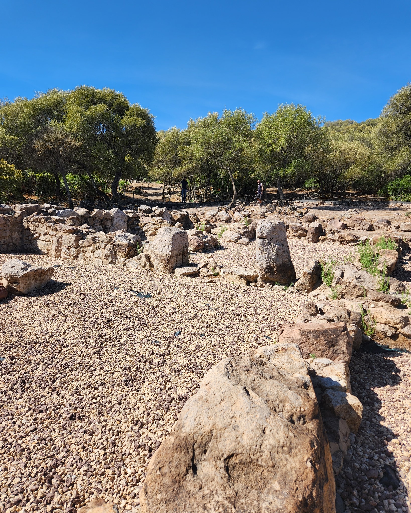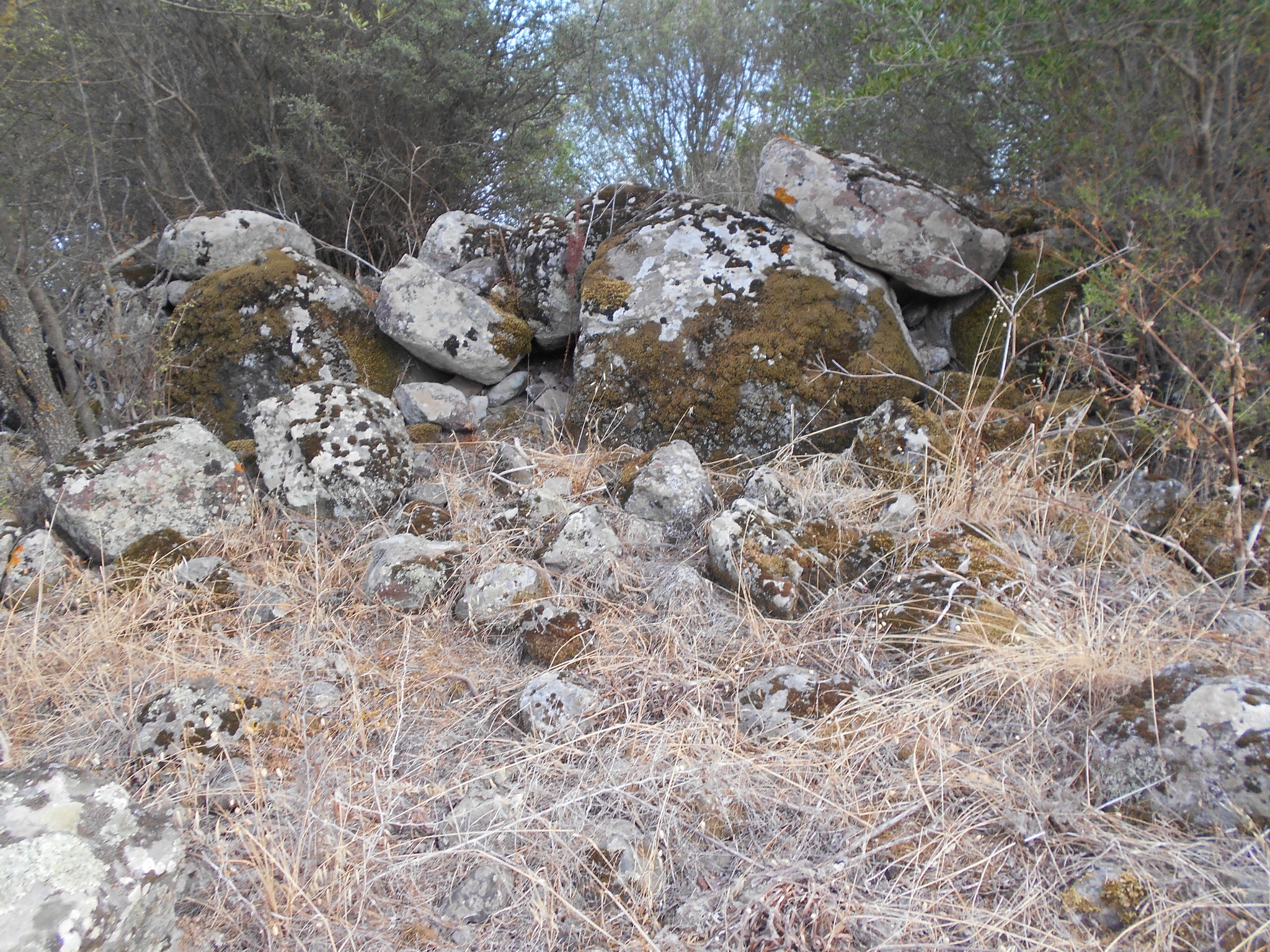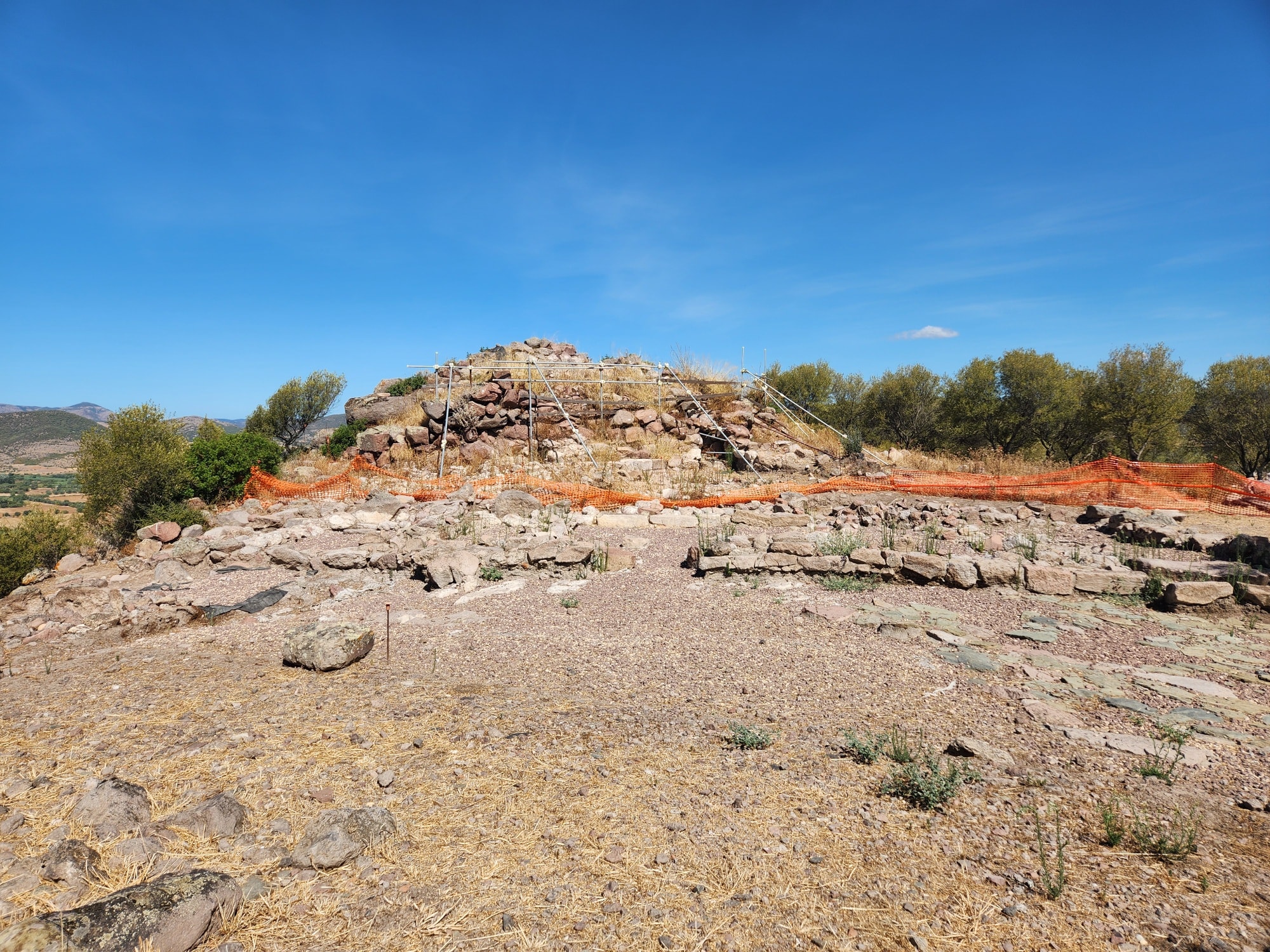 Attorno si notano resti di strutture tra cui un settore di muro circondante il nuraghe.