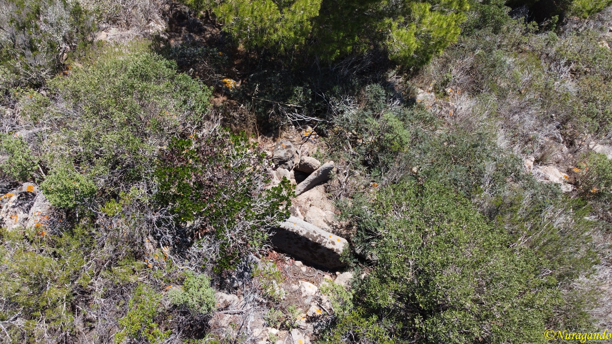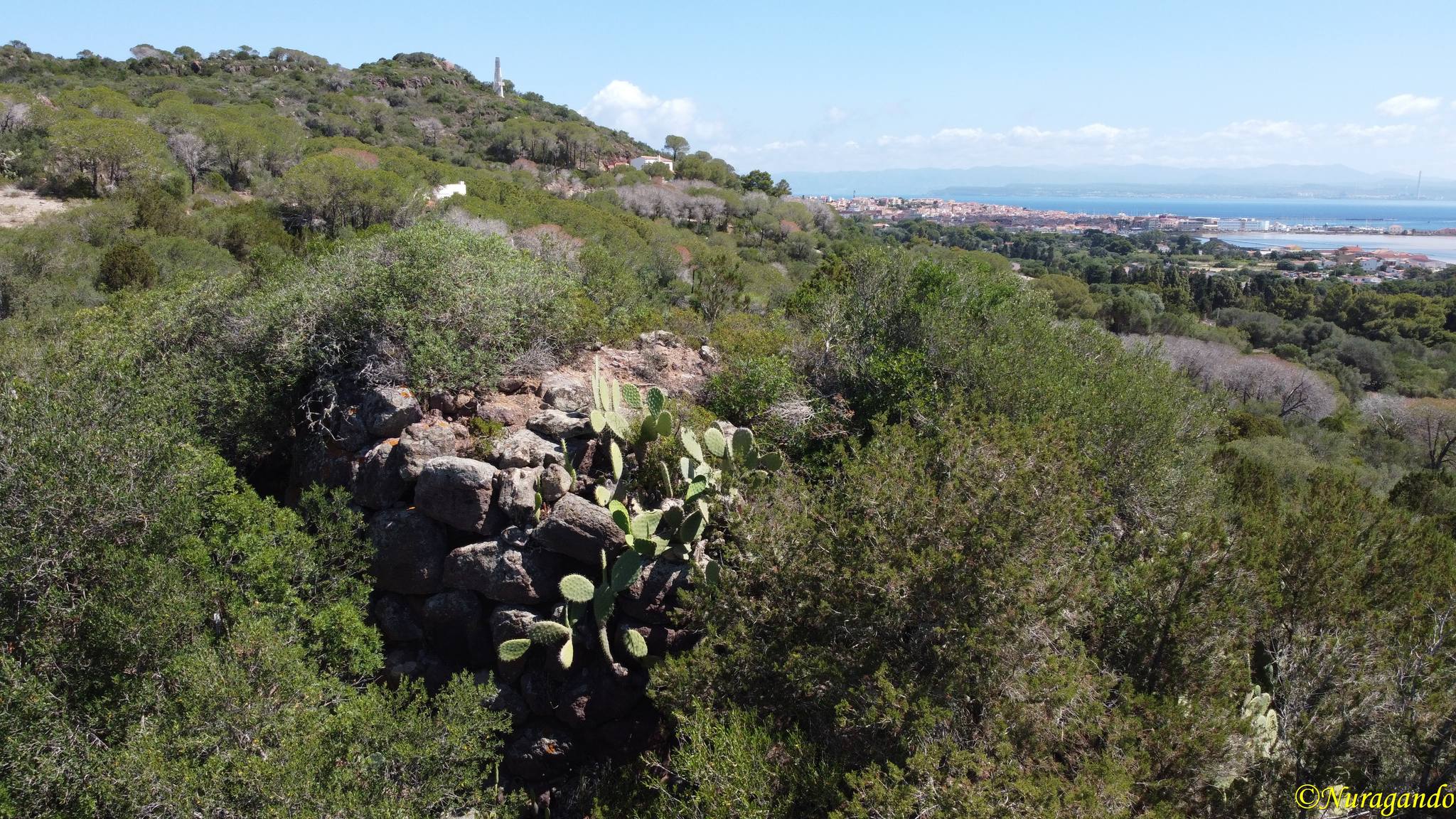 In bibliografia si menziona l’esistenza di un villaggio testimoniata dalla presenza di almeno due capanne circolari, che attualmente risultano di difficile individuazione.