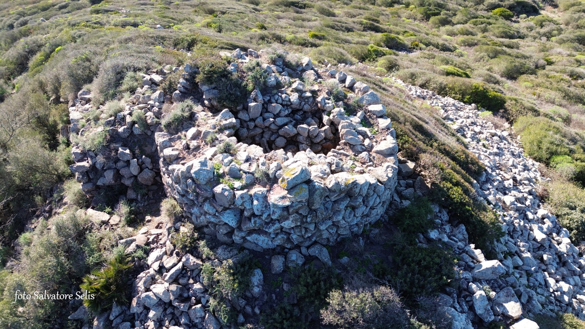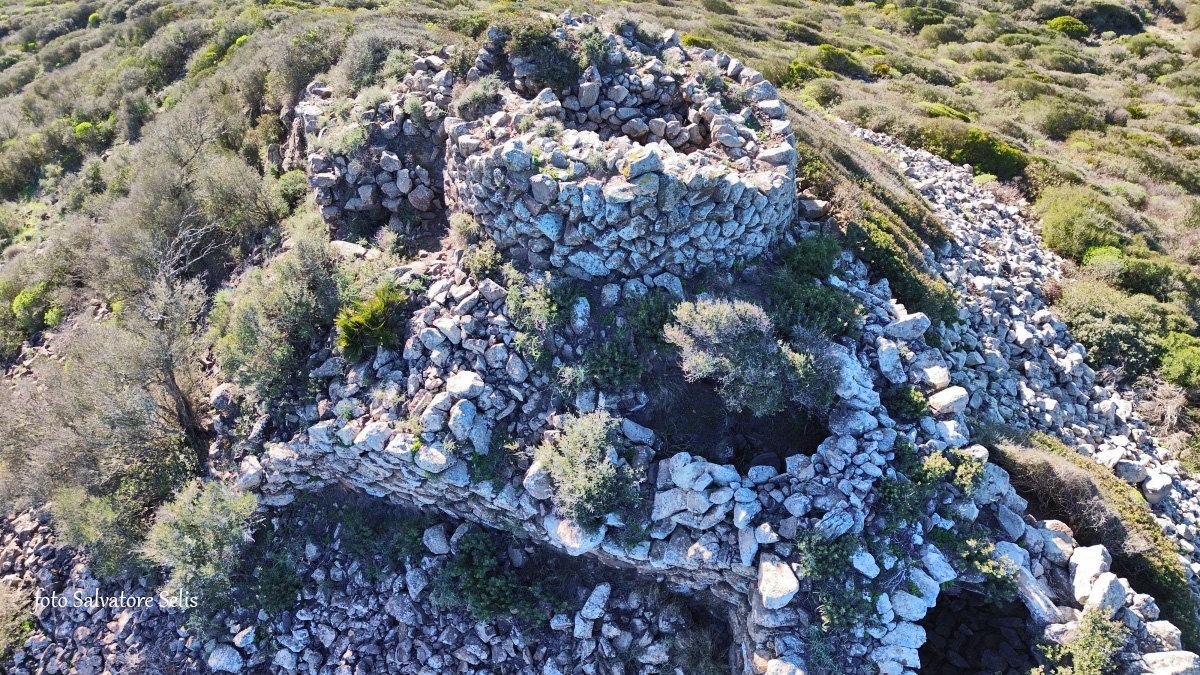 Nuraghe complesso formato da un mastio e bastione con tre torri. Si conserva la torre primitiva ingombra di terra e crolli. A SE si trova una torre di cui si notano parte delle strutture murarie;poco visibile risulta il paramento interno per la presenza di crollo e vegetazione. Una cortina muraria, collega la precedente con un’altra torre orientata a NE, di cui si conserva quasi per intero il percorso murario. Una terza torre orientata a SO conserva pressoché integro il suo percorso esterno.