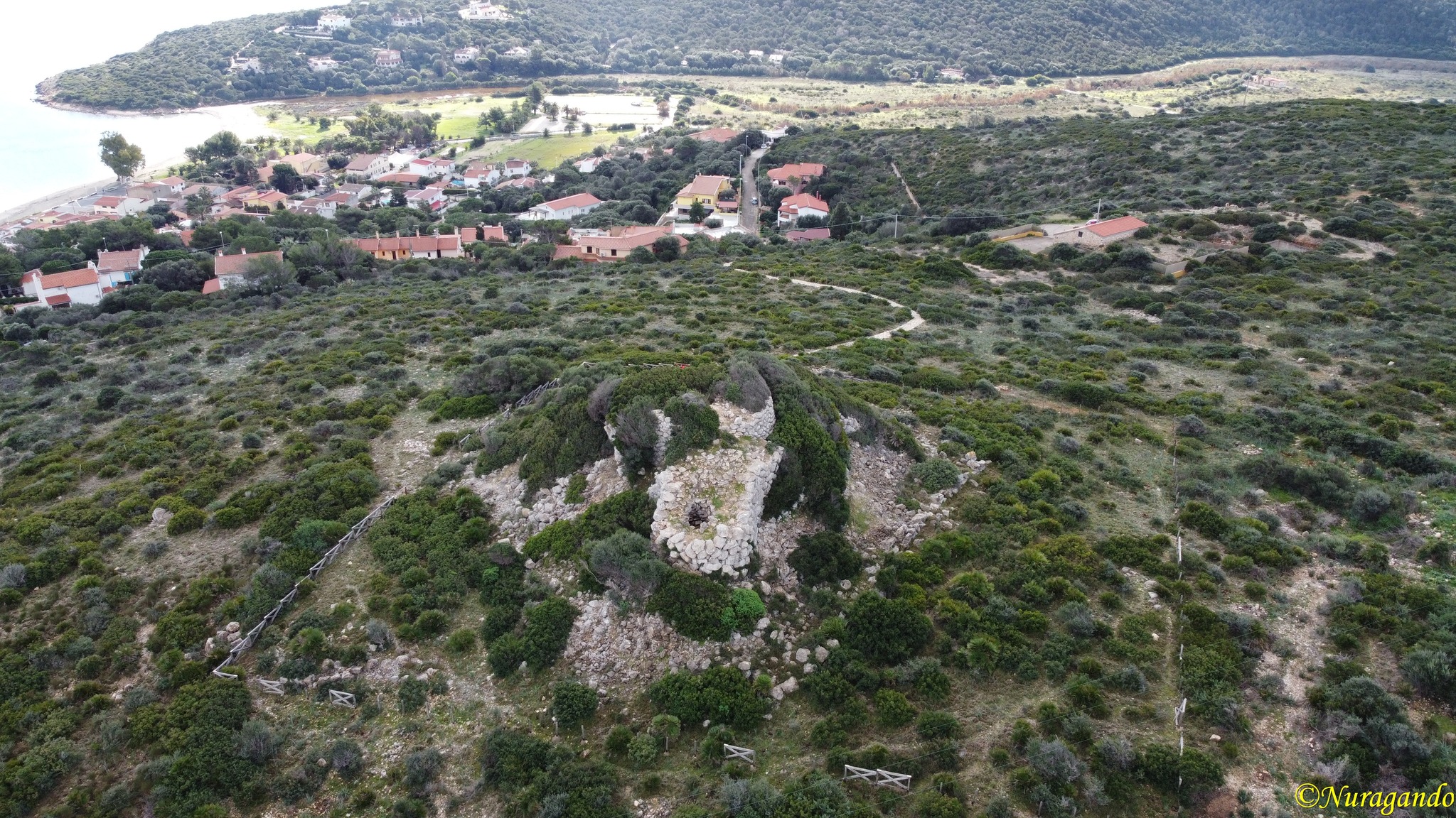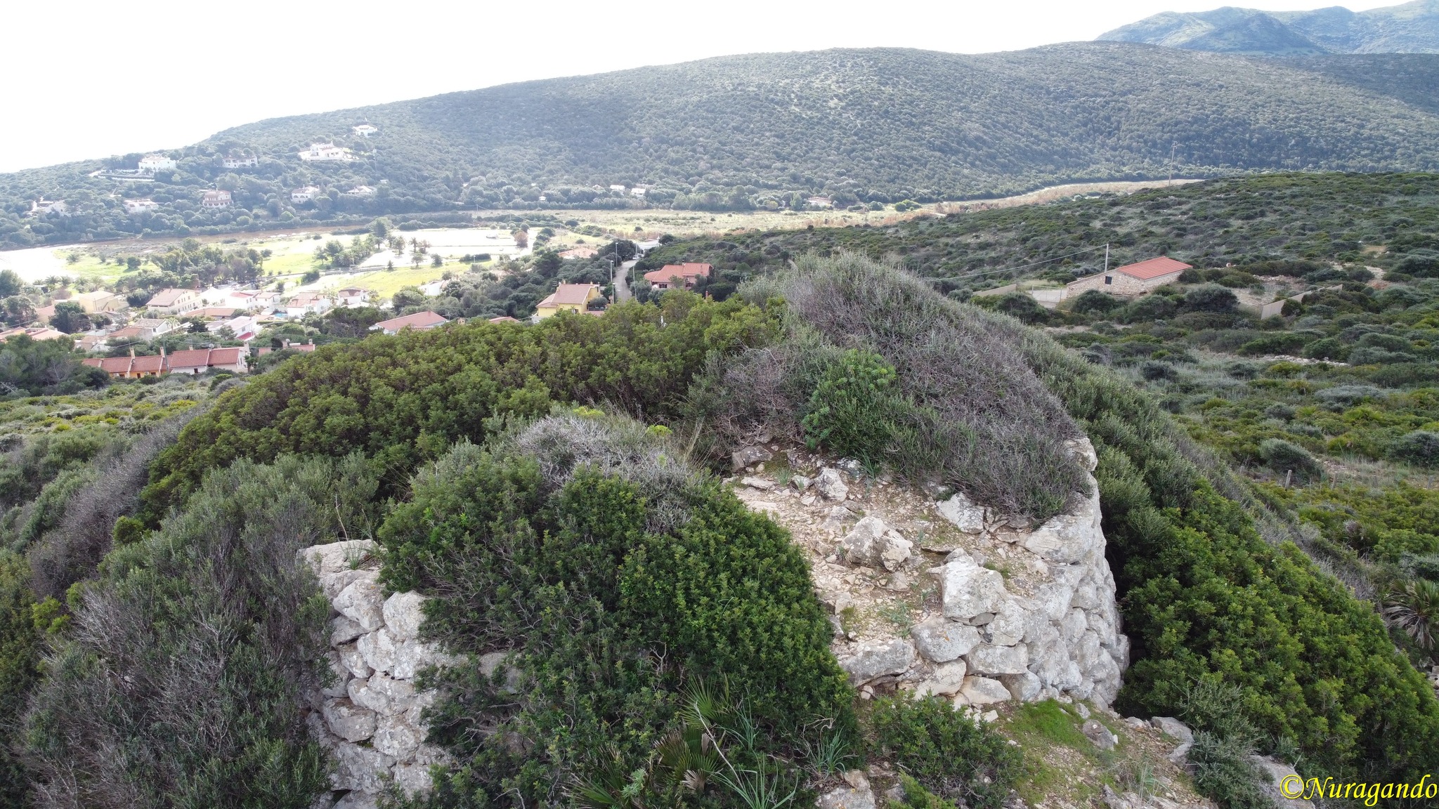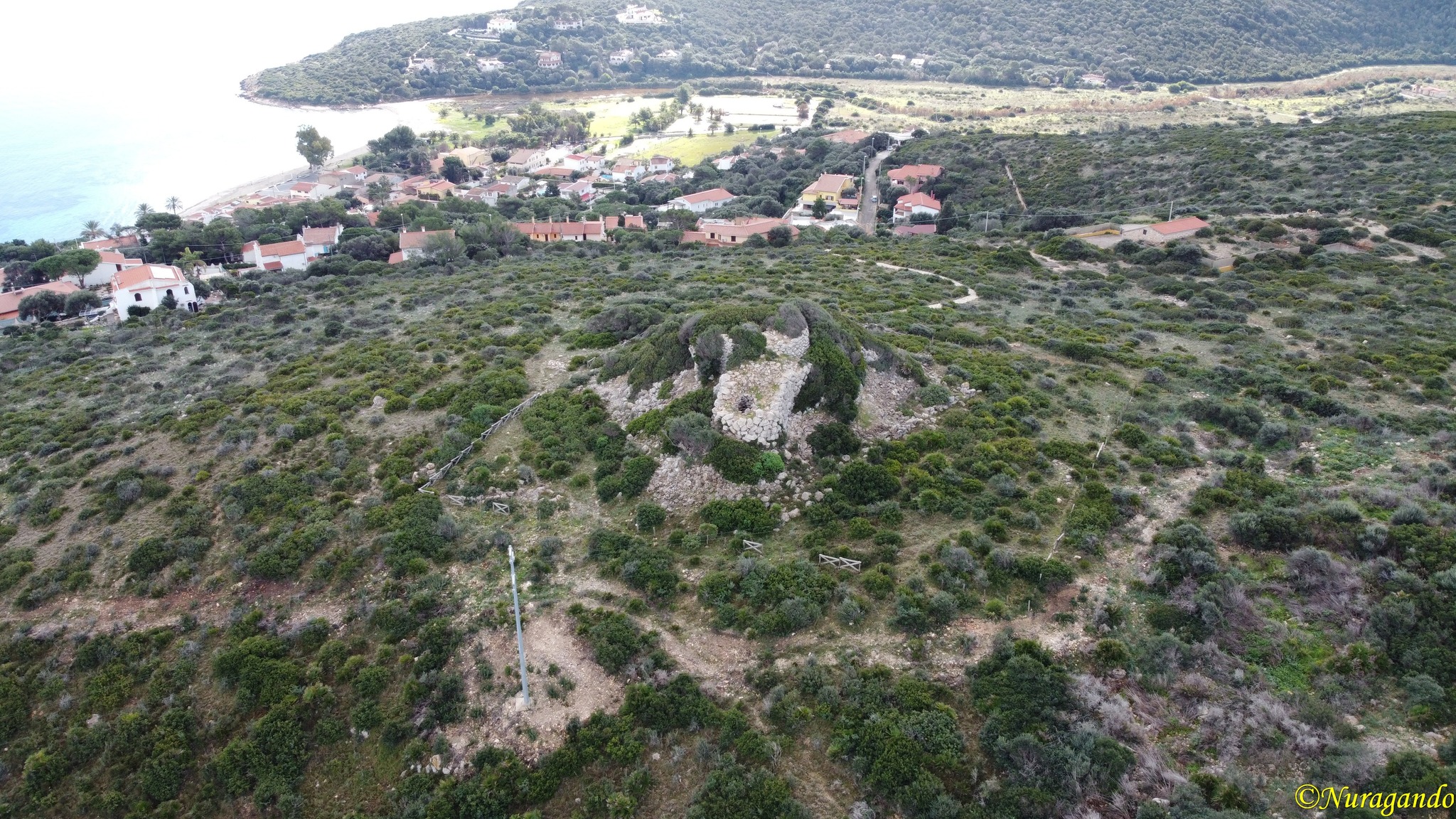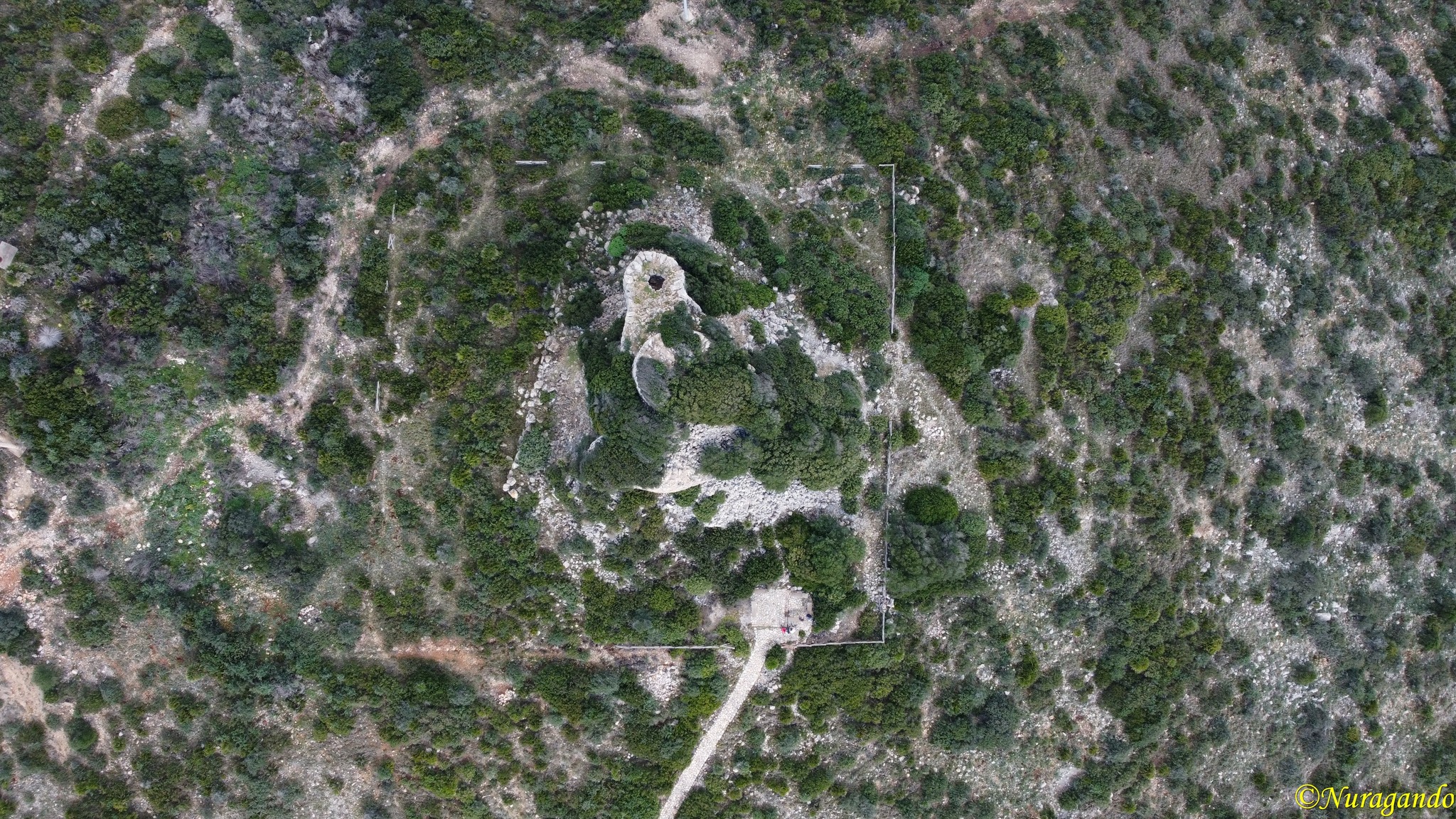 Nuraghe costruito con pietre calcaree, conserva gran parte della sua maestosità. E’ composto da un mastio, da un bastione costituito da tre torri laterali ad addizione concentrica. Sono orientate a N, a SO e a SE. La torre principale si conserva quasi integra. La torre orientata a SO conserva un’altezza max di m 1,80 ed ha l’interno ingombro di crollo. E’ probabile l’esistenza di un’ulteriore torre a SE, residuano pochi tratti del circuito e l’eventuale camera è coperto di terra e crollo.