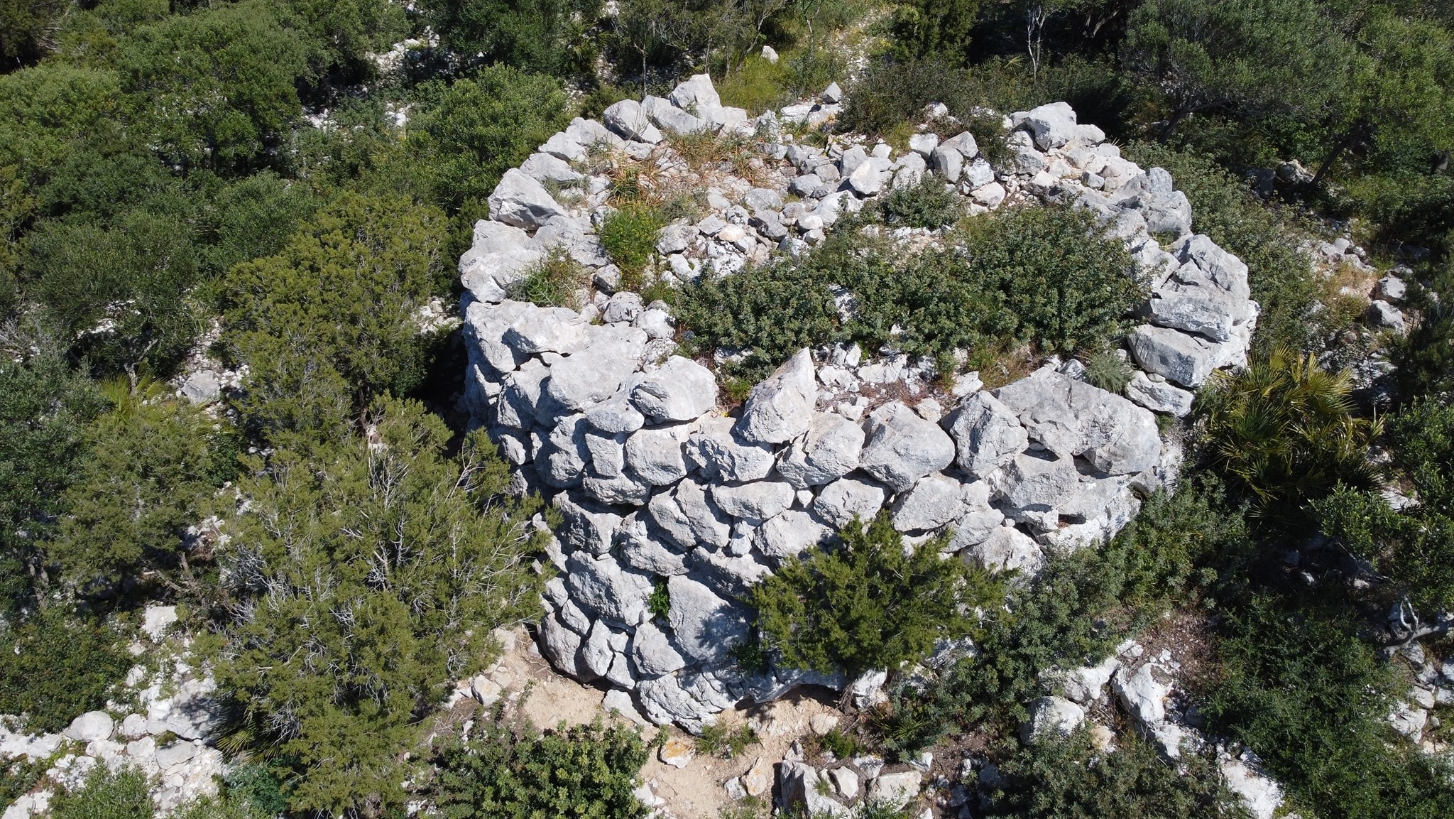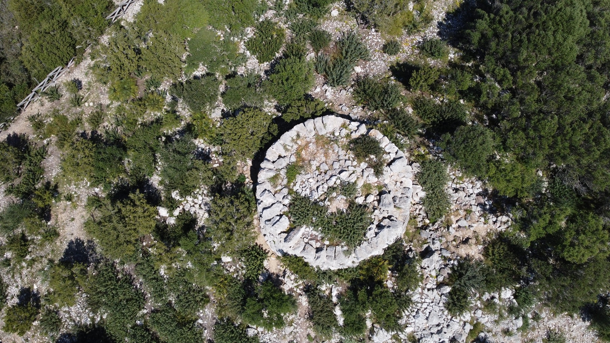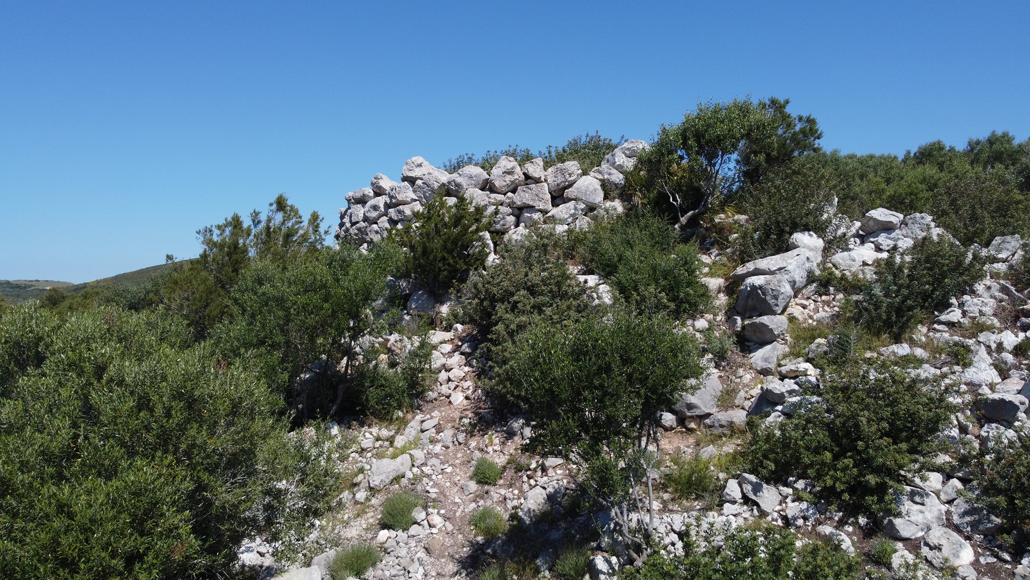 Nuraghe complesso formato da una torre primitiva e da un bastione forse quadrilobato. Si conserva l’intero percorso del mastio, benchè occultato da vegetazione e crollo. Si conservano le strutture di due ambienti facenti parte del mastio. Una cortina muraria curvilinea costituisce il raccordo di due torri periferiche orientate con direzione NNW e ENE. La torre NNW è collegata attraverso una cortina muraria ad un’altra torre orientata a WSW di cui si conserva gran parte del percorso esterno