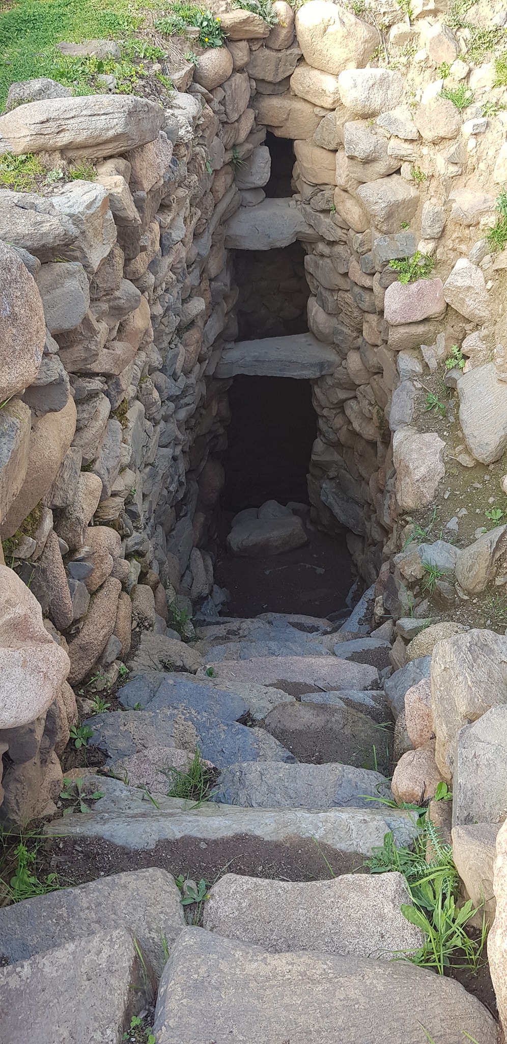 Privo di strutture a vista e del vestibolo. è costituito dalla continuità lineare di scala (28-29 gradini) e di vano d’acqua che formano insieme un vuoto rettangolare lungo m 8,12 e largo 1,25-1,10. Anche la sezione “a bottiglia” del pozzo, ellittico in pianta (m 1,82 x 1,25 altezza m 5,12), lo diversifica dagli templi a pozzo della Sardegna. L’opera muraria interna è di tipo poliedrico.